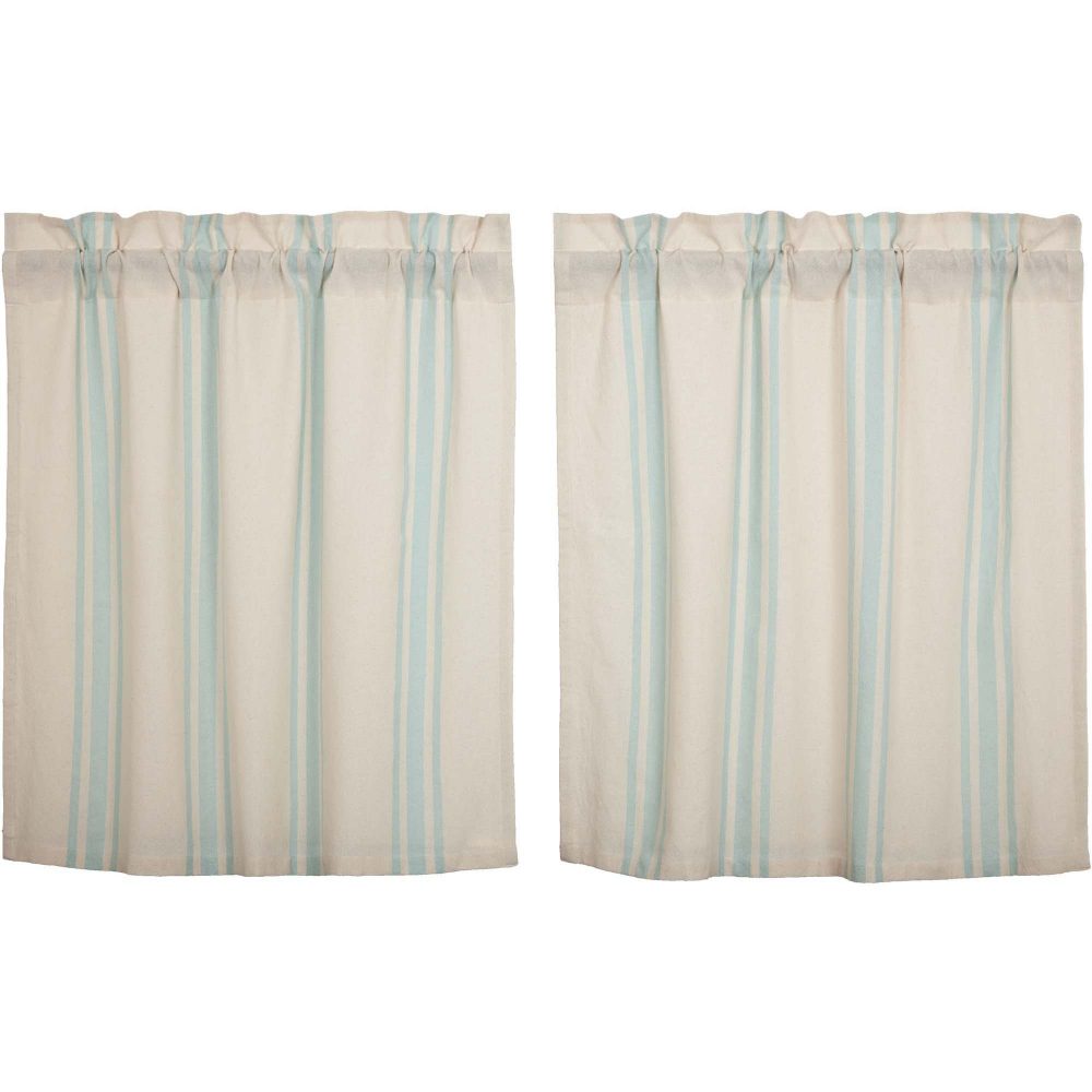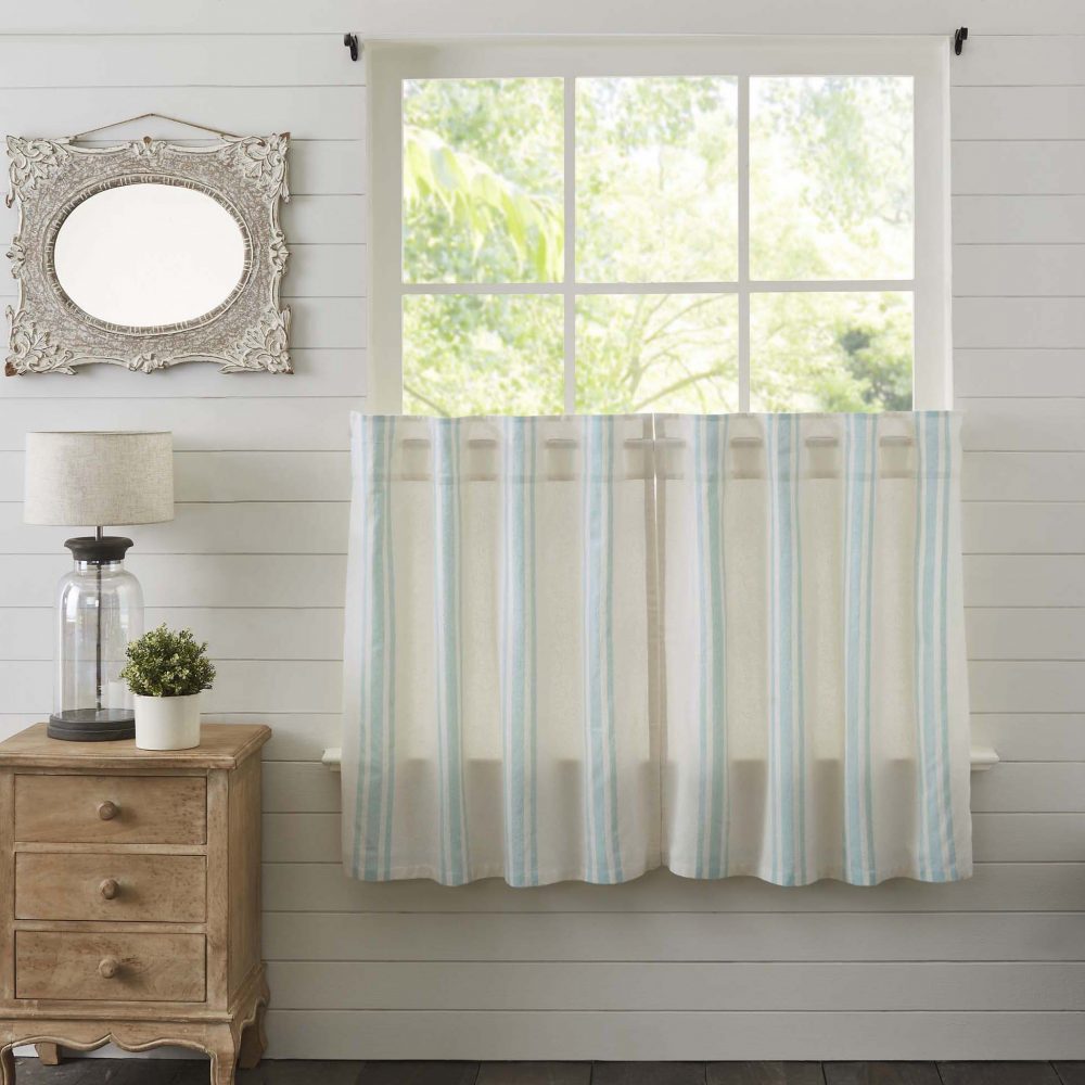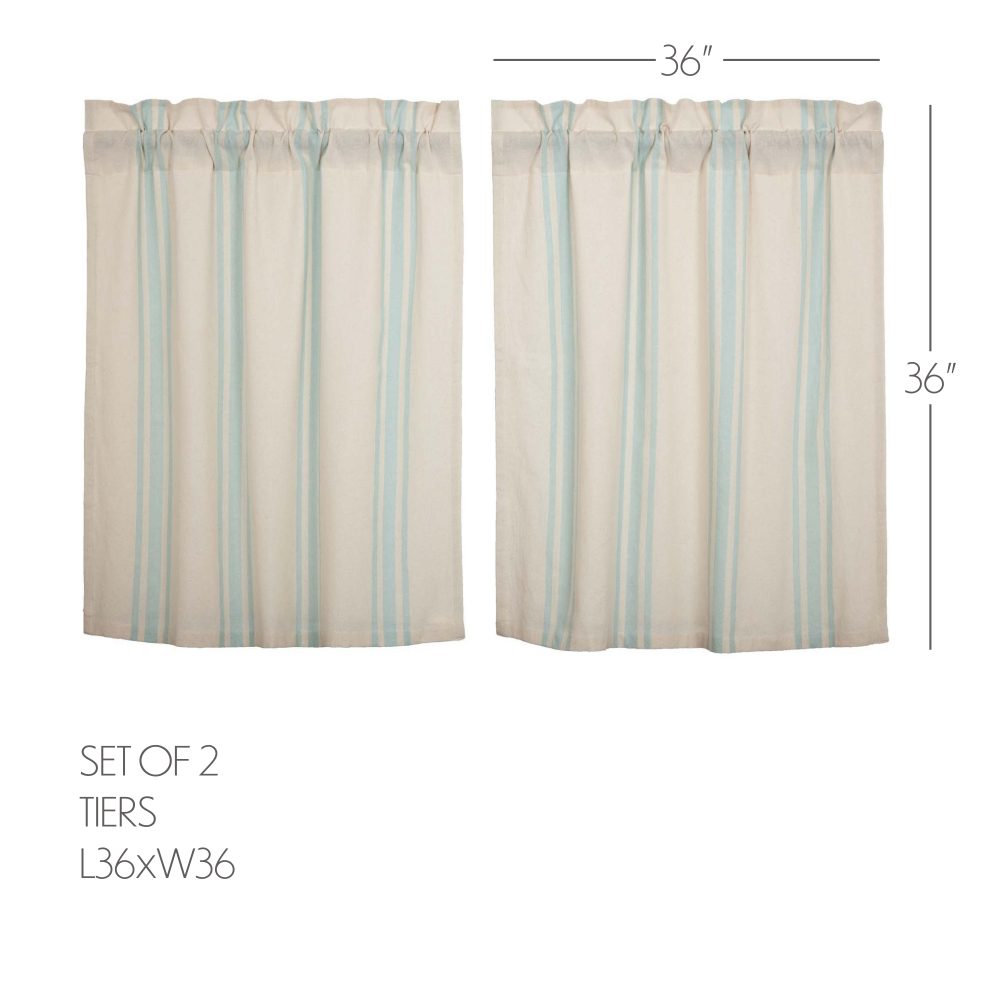 Classic and timeless, our Grain Sack Aqua Tier Set 36Lx36W helps bring your cozy sea-inspired vision to life. Perfect for any season, these textured cotton chambray curtains feature a creme base with aqua grain sack stripes. This refreshing window treatment coordinates well with our Avani Sea Glass bedding collection for a complete look in your vintage or boho farmhouse-style bedroom.