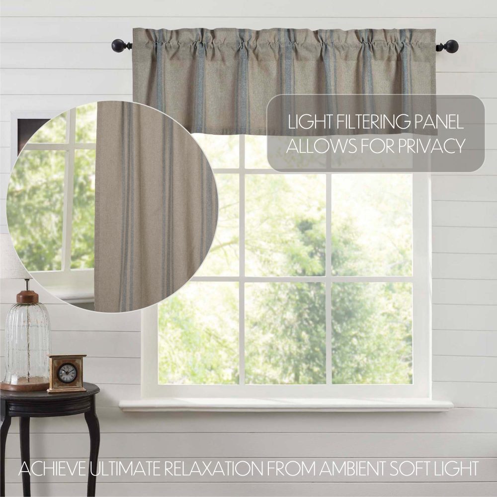 Khaki and blue-grey combine to add depth to any farmhouse-styled room. The Grain Sack Blue Valance 16x60 features textured cotton chambray in rustic, vintage-inspired tones. Pairs effortlessly with other April & Olive collections to complete vintage and farmhouse-style rooms. Features a soft, cotton lining to filter sunlight and prevent fading. Includes a rod pocket and loops for easy hanging.