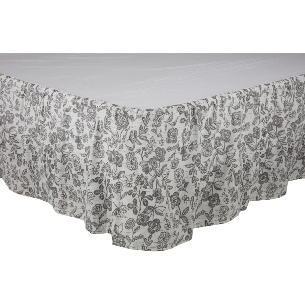 You're going to love creating the bedroom of your dreams when you begin with the fresh, fun fabric of the Gray Gables King Bedskirt. The dynamic design of delicate flowers offers an airy look that adds visual energy and appealing movement to your bedding ensemble. The quiet gray and soft, restful white introduces an understated color palette that never looks overdone or outdated. Your rustic retreat will enjoy the softest stylish upgrade with the Bed Skirt draping beautifully, covering both the box spring and bed frame. Perfectly gathered ruffles add a cozy layer of soft, casual luxury and a graceful touch that accentuates current lifestyles perfectly. You can mix and match the bed skirt with numerous linens in the large Gray Gables Collection, which has seasonal and everyday options, giving you the opportunity to create a look that is as distinct and individual as you.
