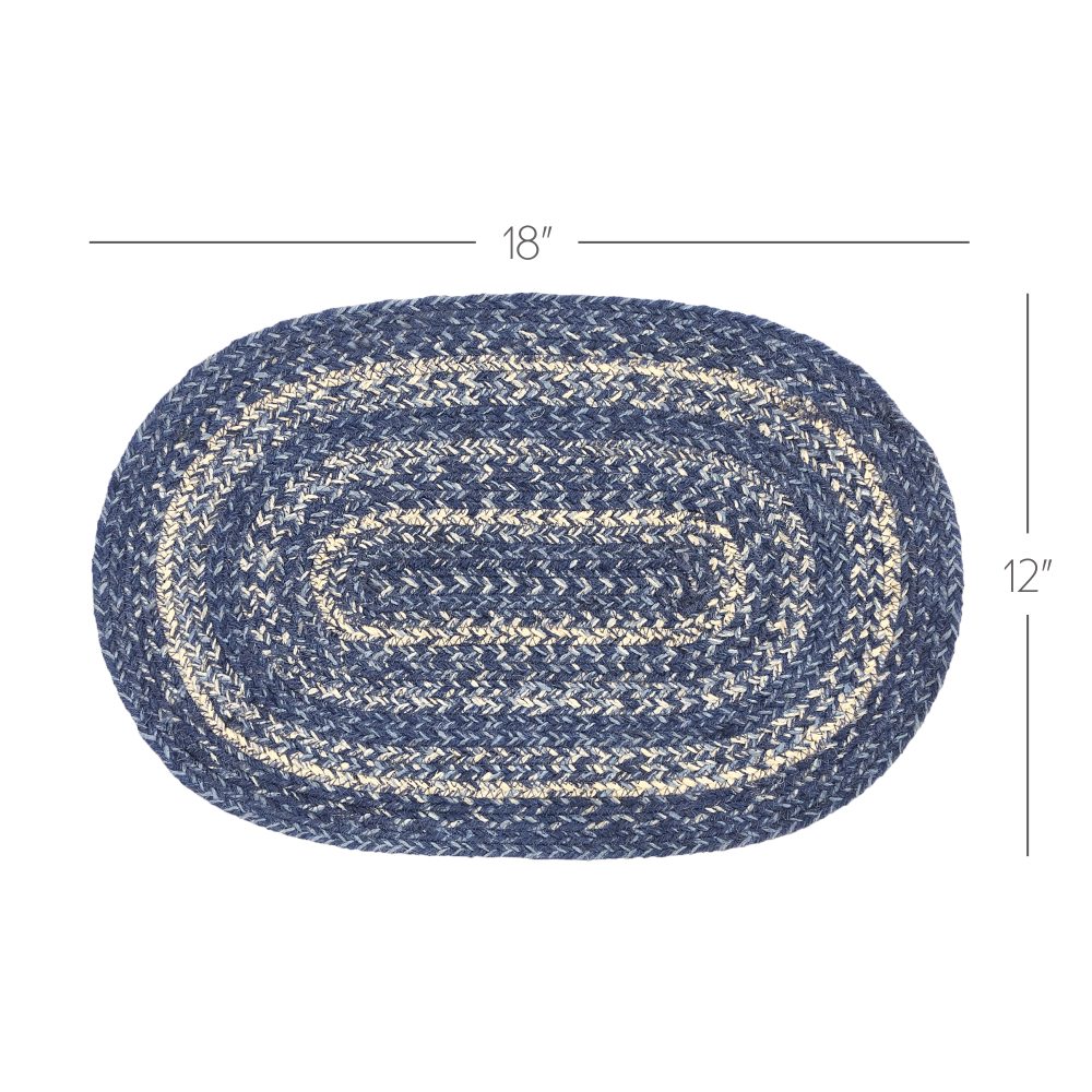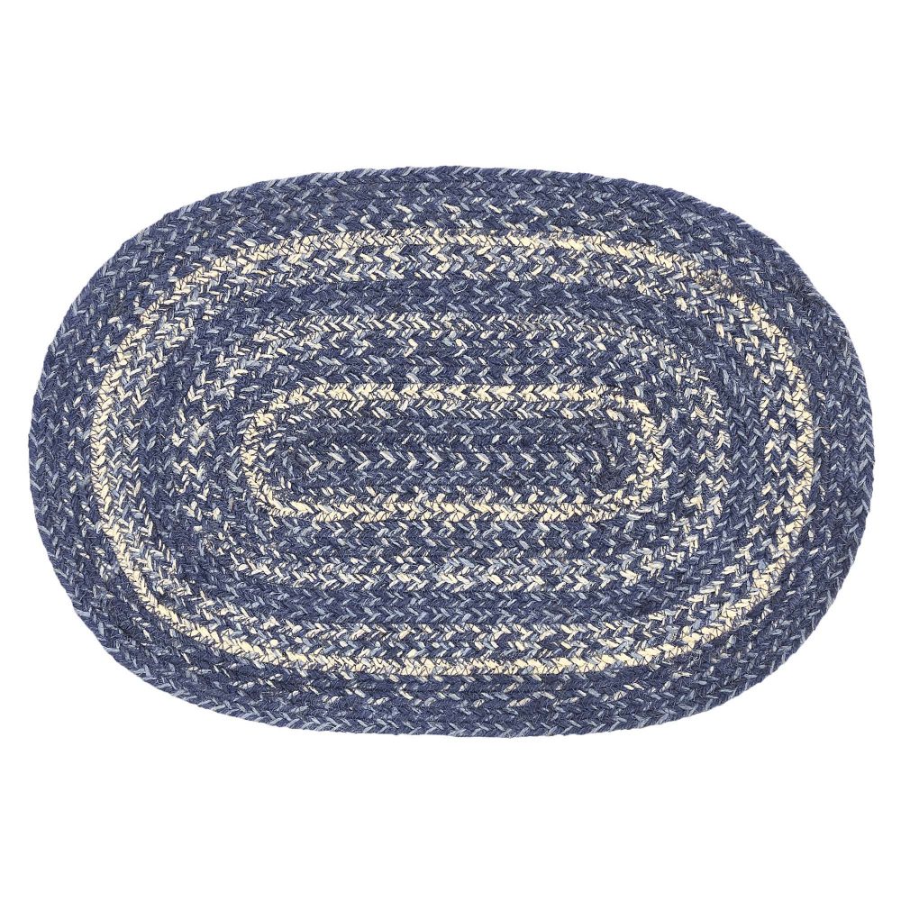 Create a joyful table for friends and family to gather round with calming colors and classic texture. The Great Falls Blue Jute Placemat includes an individual oval placemat measuring 12x18 inches made from a premium Jute blend. The rich texture of braided jute is given a modern twist with indigo, powder blue and creme tones for coastal country style. Complete your tabletop decor with other pieces from the Great Falls Blue Jute Collection by VHC for modern farmhouse or cottage style.