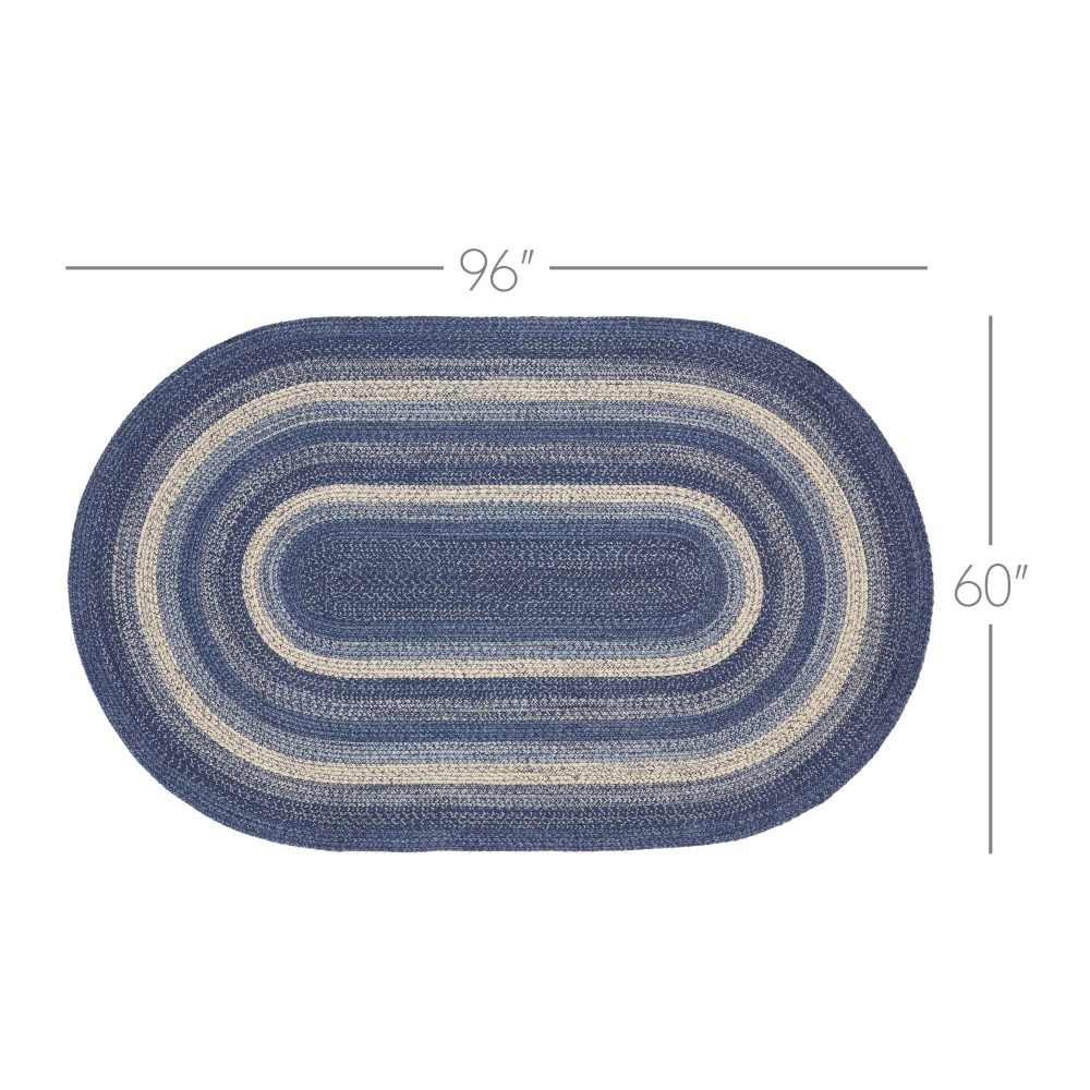 Create a stylish, modern feel with timeless shades of blue and creme in a curl-resistant jute blend that adds style and safety anywhere a versatile area rug is needed. The Great Falls Jute Rug measures 60x96 inches and features a classic oval shape and tight braids constructed with a durable jute blend. The special blend relaxes faster and stays flat. The included PVC mat makes sure your beautifully braided jute rug stays exactly where it should. Features a blend of indigo, powder blue and creme for a bright, classic look that complements a wide array of country farmhouse and coastal cottage decor.