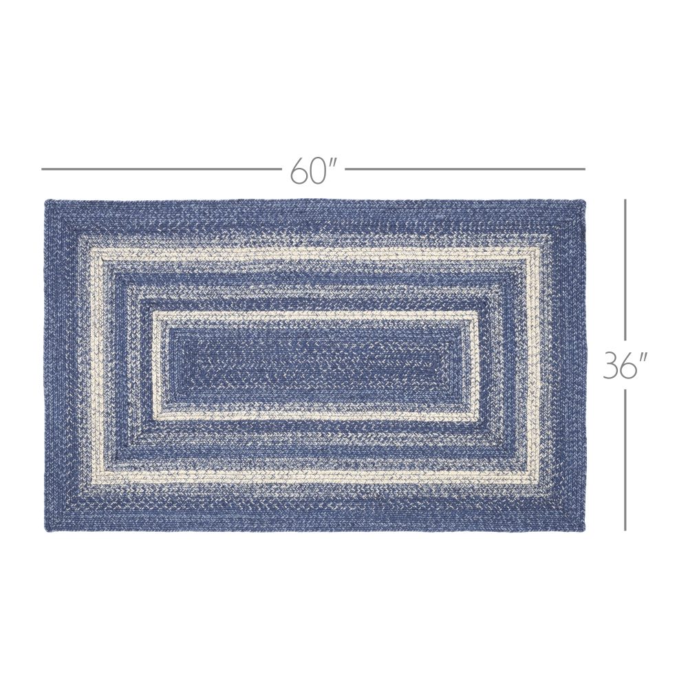 Create a stylish, modern feel with timeless shades of blue and creme in a curl-resistant jute blend that adds style and safety anywhere a large accent rug is needed. The Great Falls Jute Rug measures 36x60 inches and features a classic rectangle shape and tight braids constructed with a durable jute blend. The special blend relaxes faster and stays flat. The included PVC mat makes sure your beautifully braided jute rug stays exactly where it should. Features a blend of indigo, powder blue and creme for a bright, classic look that complements a wide array of country farmhouse and coastal cottage decor.