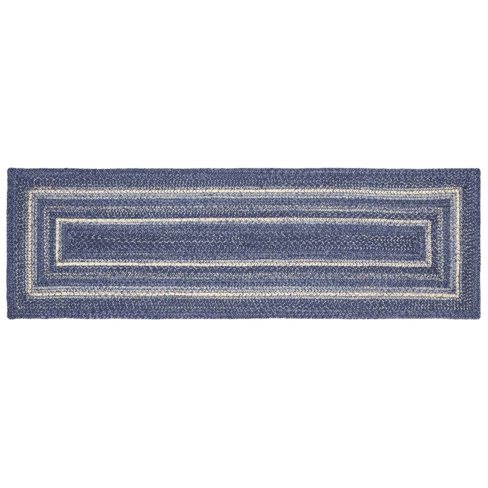 Create a warm, homey feeling in your hallway with deep primitive colors in a curl-resistant jute blend that adds style and safety anywhere a long runner style rug is needed. The Great Falls Jute Runner measures 22x72 inches and features a classic rectangle shape and tight braids constructed with a durable jute blend. The special blend relaxes faster and stays flat. The included PVC mat makes sure your beautifully braided jute rug stays exactly where it should. Features a blend of indigo, powder blue and creme for a bright, classic look that complements a wide array of country farmhouse and coastal cottage decor.
