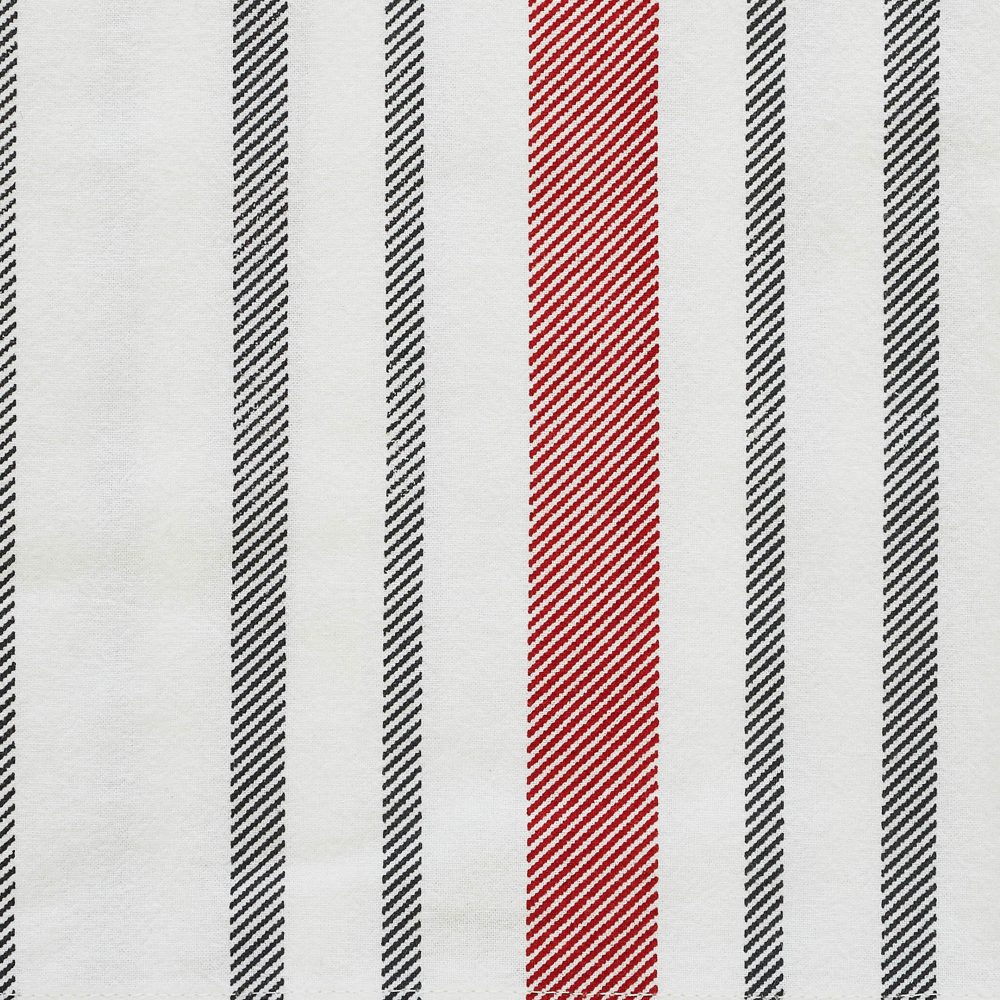 - FARMHOUSE DESIGN: Timeless patterns of simple red and gray plaids and grain sack stripes transform a simple bleached cotton muslin base into a vintage farmhouse kitchen accent.