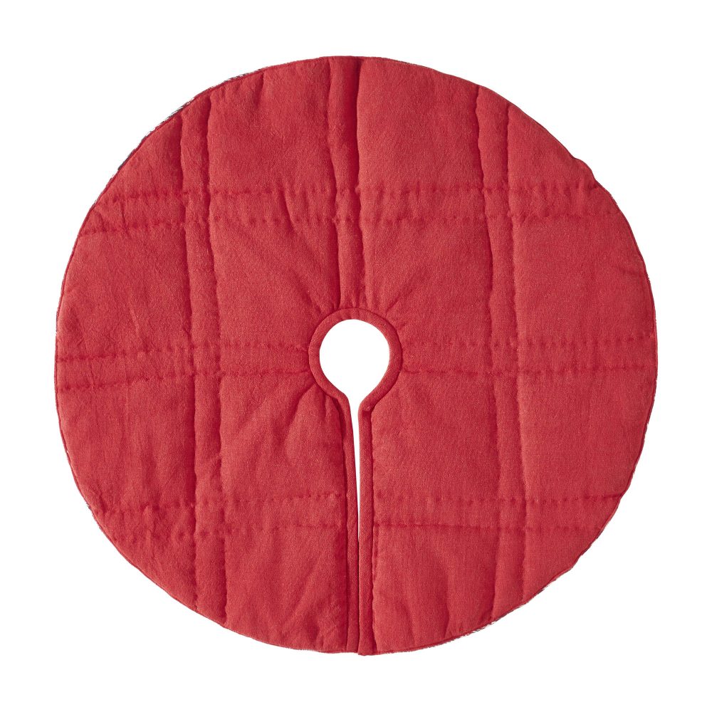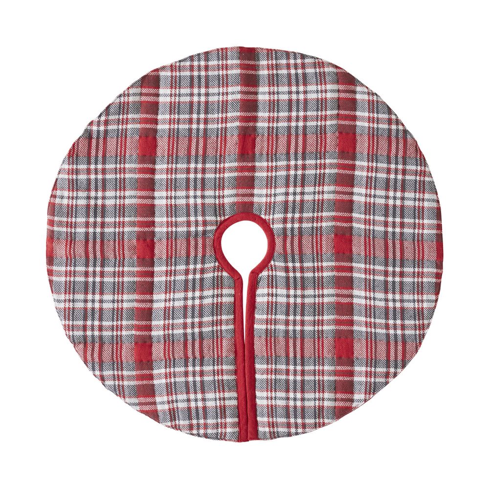 Add rustic style to your Christmas traditions with the Gregor Plaid Tree Skirt. The round tree skirt features a 24 inch diameter. A bright red base with white and grey tartan plaid stripes add country style for a timeless Christmas look. The classic red Christmas tree skirt is made for yearly use with a cotton base and quilted details designed to mimic the plaid striping. Pair with coordinating items from the Gregor Plaid Collection by VHC for a complete, festive holiday look.