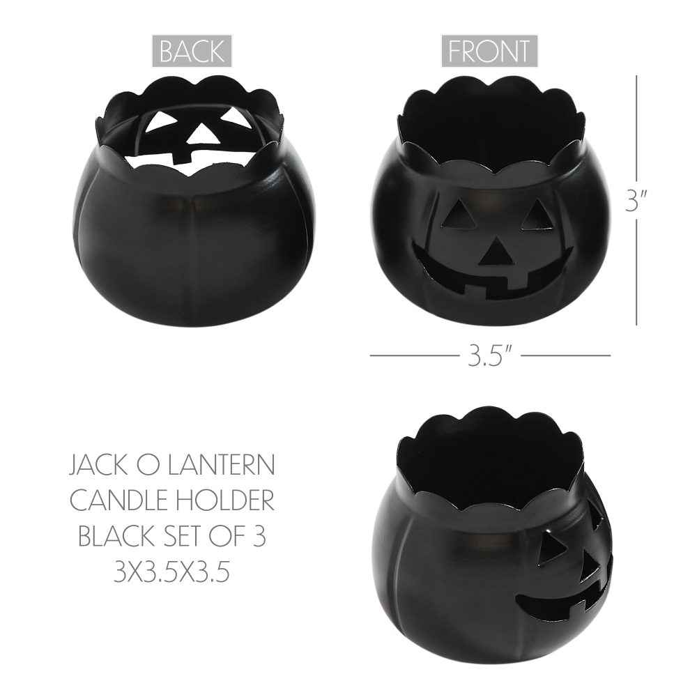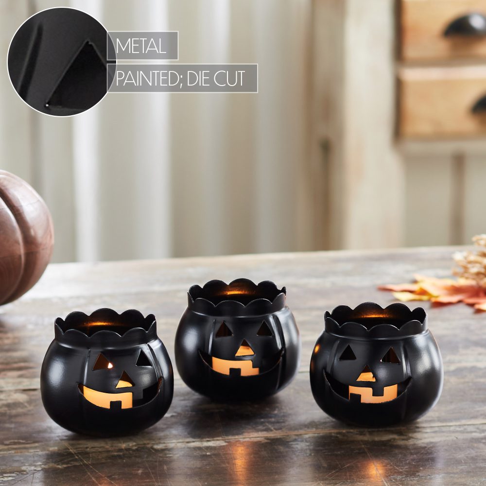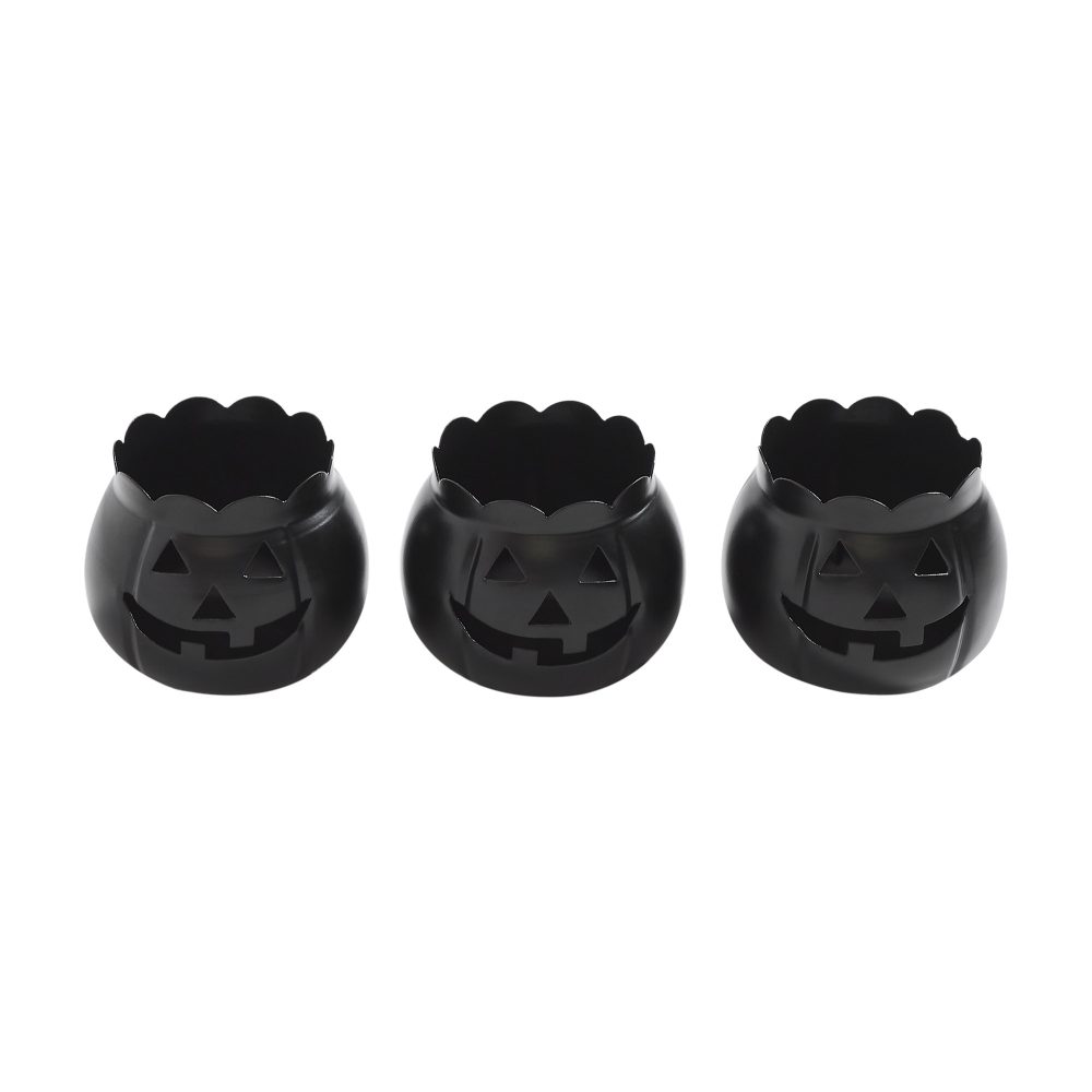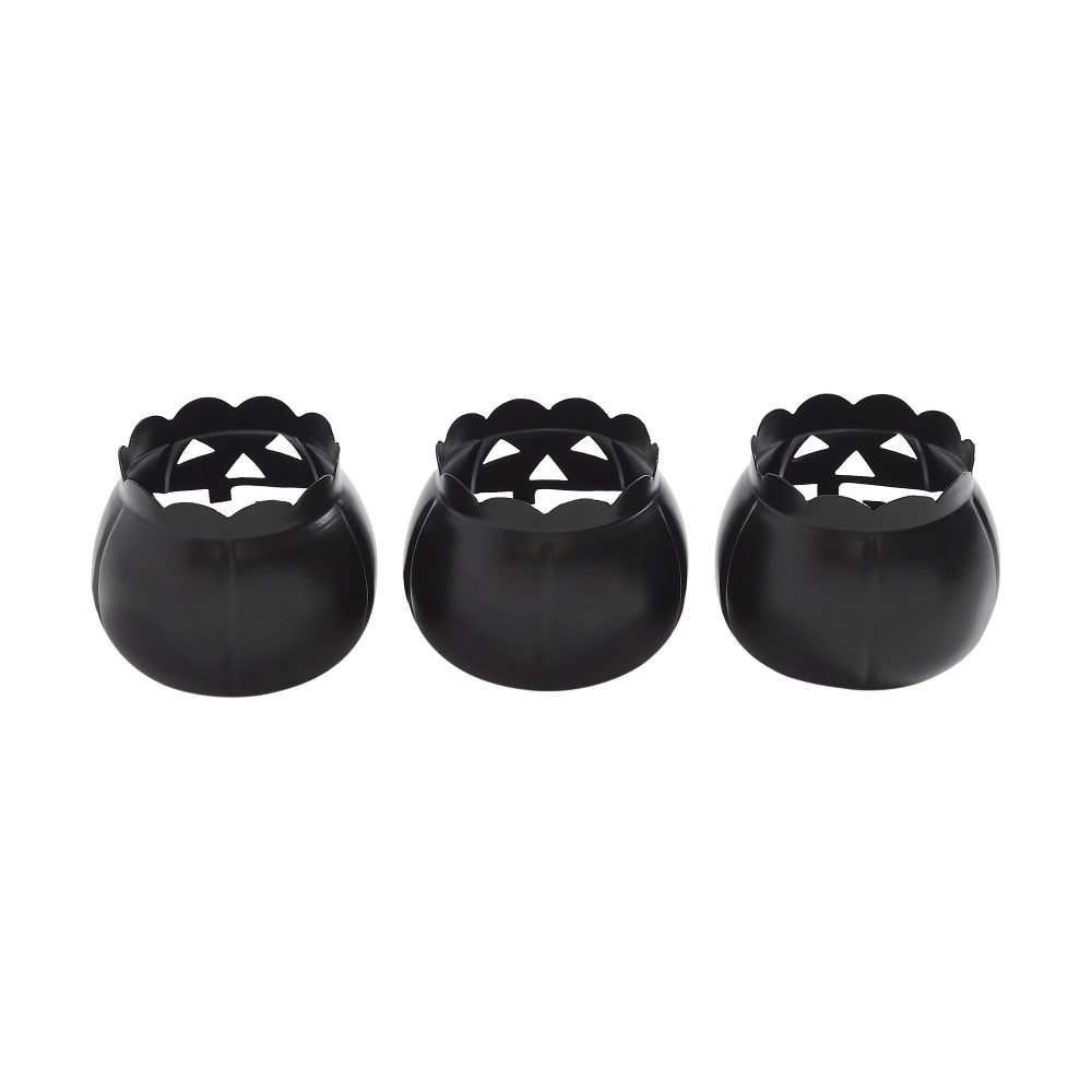 Halloween Black Jack O Lantern Candle Holder Set of 3 Spooky Pumpkin Tabletop Votive & Tea Light Decor, 3.5inch