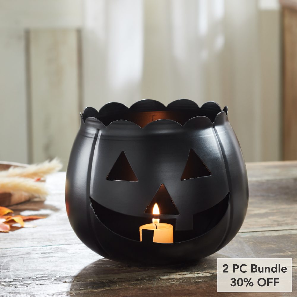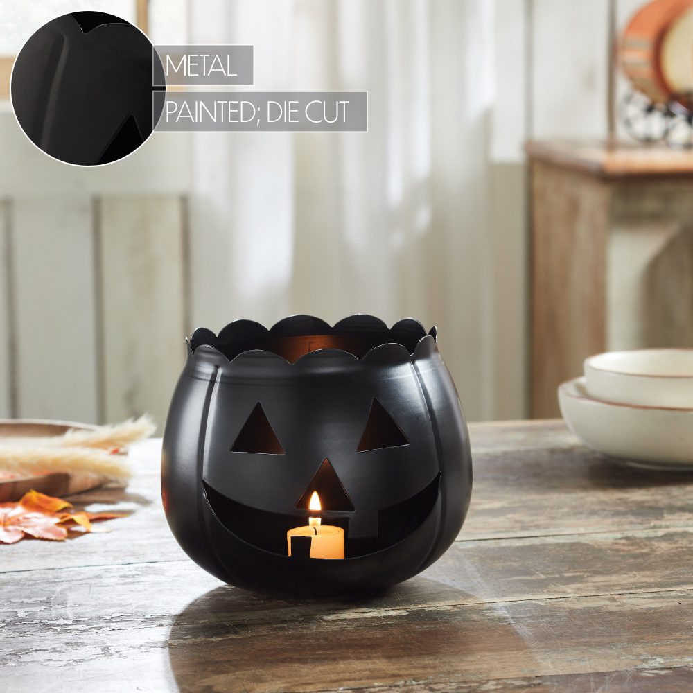- Sku – 89866 – Halloween Black Jack O Lantern Decorative Candle Holder Spooky Pumpkin Votive Lantern 6.25in H x 7.5in W x 7.5in D Seasonal Accent (2 Packages)