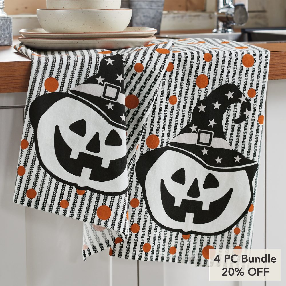 - Sku – 89877 – Halloween Fall Kitchen Towel Set, 19×28 Absorbent Cotton Pumpkin & Stripe Dish & Hand Towels (2Pack) (2 Packages)