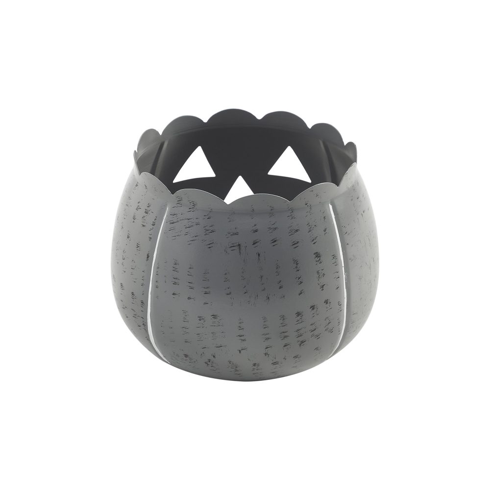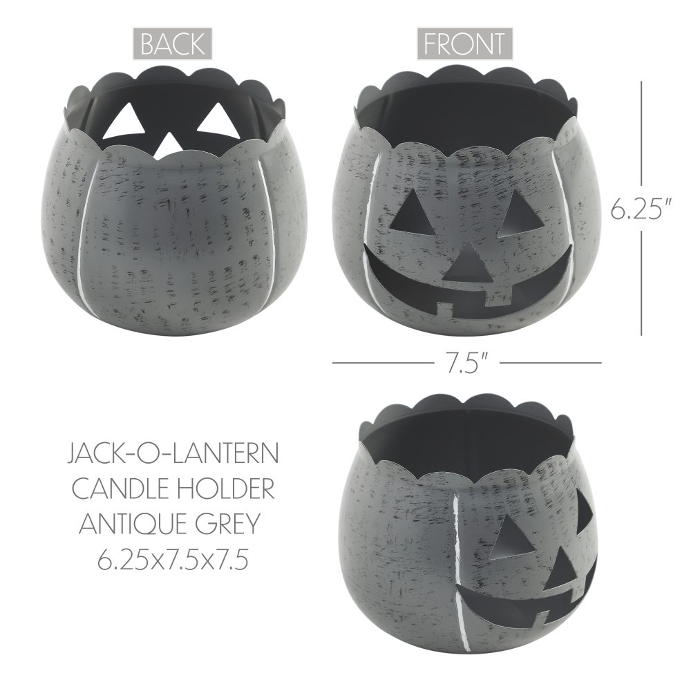 - PREMIUM CRAFTSMANSHIP & DESIGN: Expertly crafted from durable metal, this antique grey Jack-O-Lantern candle holder features a perfectly plump pumpkin silhouette, elegantly scalloped rim, and a primitive, inviting face; designed for tabletop seasonal decor, it measures 6.25H x 7.5W x 7.5D inches and safely cradles a tealight (not included) to cast a warm, ambient glow, maintaining its charm with a simple wipe-clean.