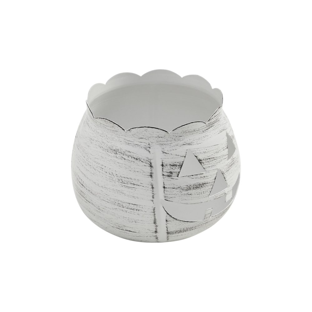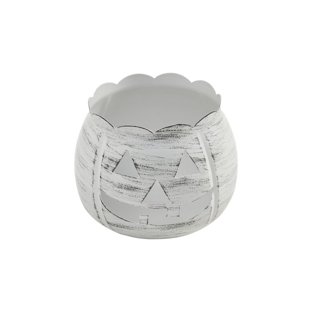 - PRODUCT SPECIFICATIONS: Meticulously crafted from durable metal with a creamy antique white finish, this charming pumpkin-shaped tealight candle holder features a classic Jack-O-Lantern face and gently scalloped rim, precisely dimensioned at 4.25 inches wide, 5.25 inches deep, and 5.25 inches high, designed to beautifully complement rustic, primitive, or farmhouse decor while casting a soft, inviting glow for your fall and Halloween displays.