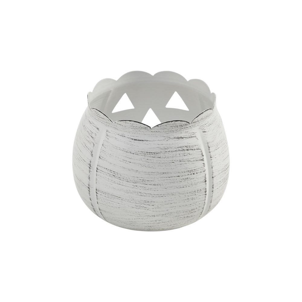Invite the warm, timeless embrace of autumn into your home with the VHC Brands Jack-O-Lantern Candle Holder in Antique White. This enchanting pumpkin-shaped tealight holder, meticulously crafted from durable metal and finished in a creamy antique white, instantly evokes the serene charm of a cozy farmhouse or a quaint cottage. Measuring a perfectly proportioned 4.25x5.25 inches, it features a classic Jack-O-Lantern face framed by a gently scalloped rim, ready to cast a soft, inviting glow across your dining table, kitchen counter, or living room mantel. Its understated elegance and playful yet primitive design effortlessly blend with existing rustic, primitive, or farmhouse decor, making it an indispensable accent for your fall and Halloween celebrations. As dusk settles, let this charming Jack-O-Lantern become the heart of your seasonal display, filling your space with a comforting ambiance. The neutral antique white tone ensures versatile styling, complementing a vibrant array of fall foliage and festive touches. Maintaining its pristine allure is delightfully simple with a quick wipe using a soft cloth. For continued enjoyment and safety, always allow the metal holder to cool completely after use before handling or moving. Keep this delightful candle holder out of reach of children and far from any flammable materials, ensuring many seasons of cherished memories and a perfectly glowing harvest atmosphere.