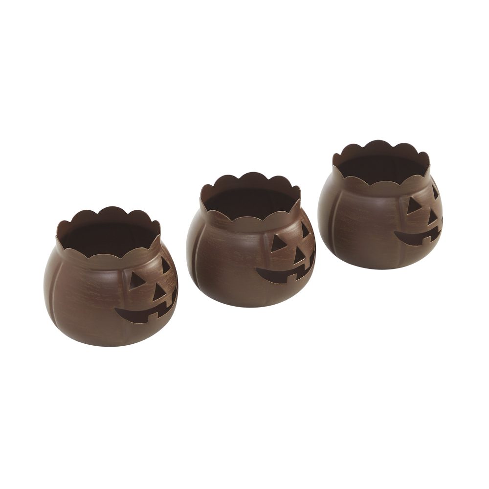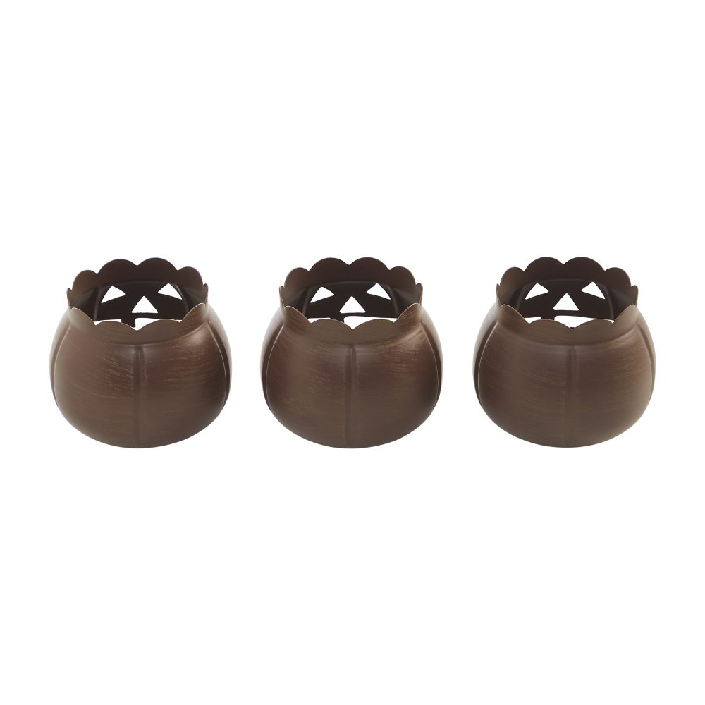 Halloween Tabletop Bronze Jack O Lantern Votive Holders Set of 3 for Fall Decor, 3.5 Inch