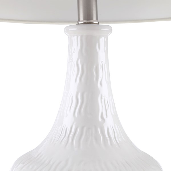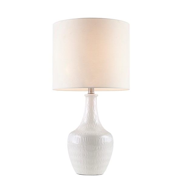 Add dimension and a modern flair to any room in your home with 510 Design Celine Textured Ceramic Table Lamp. This ceramic table lamp features a textured vase design with a white finish to create a charming contemporary look.