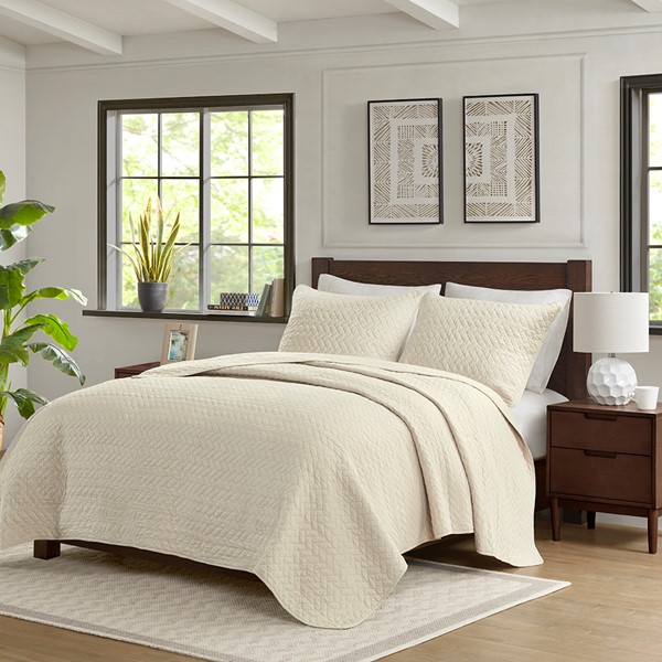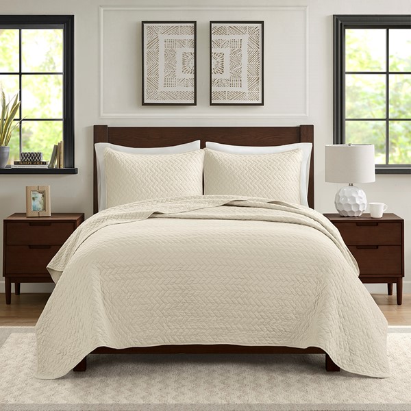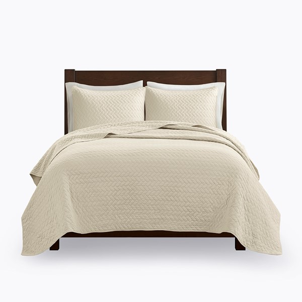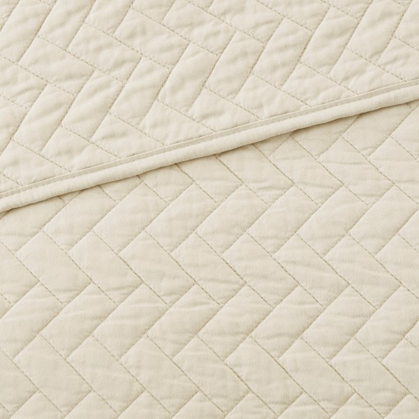 * Luxurious 3 piece quilt set in all over herringbone quilted pattern