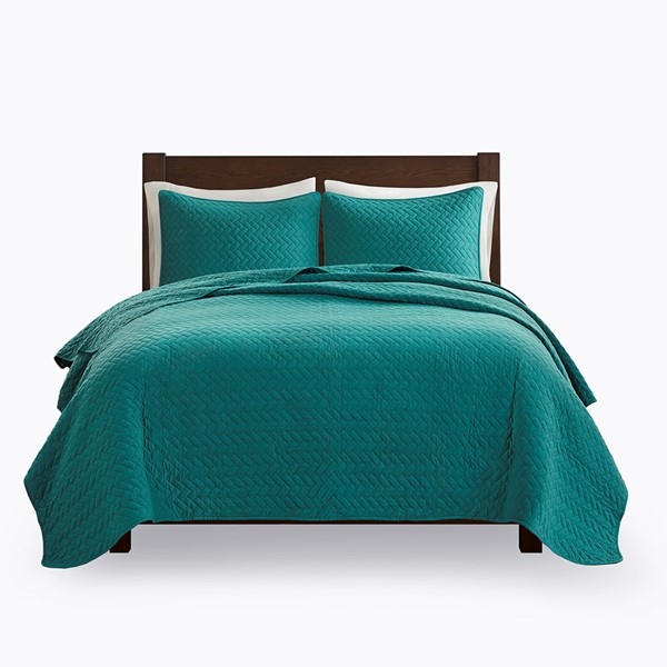 * Luxurious 3 piece quilt set in all over herringbone quilted pattern