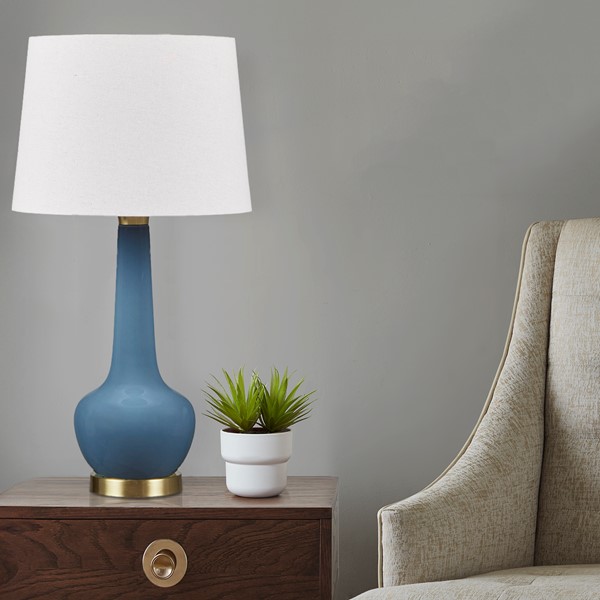 While the lamps are visually appealing and a worthwhile purchase, it should be noted that the aqua base is made of plastic rather than glass. Despite this, I am satisfied with my purchase as they complement the decor in my guest room and were delivered safely.