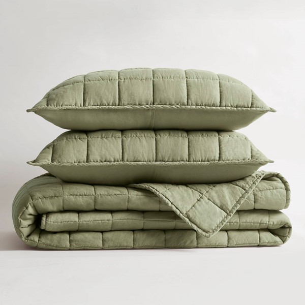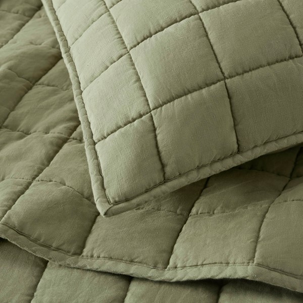 Harbor House French Flax Linen Garment Washed Quilt Set in Olive Green, King/Cal King HHD14-1924