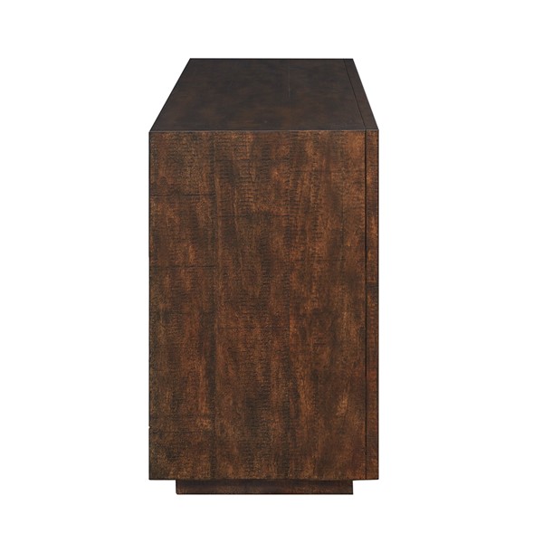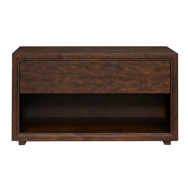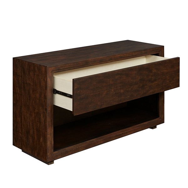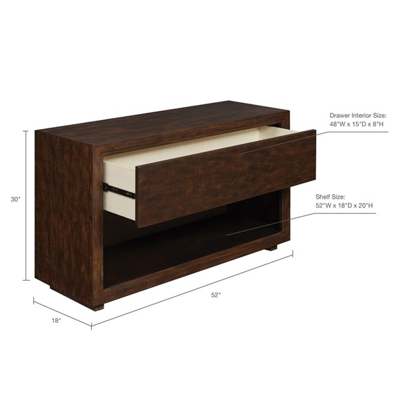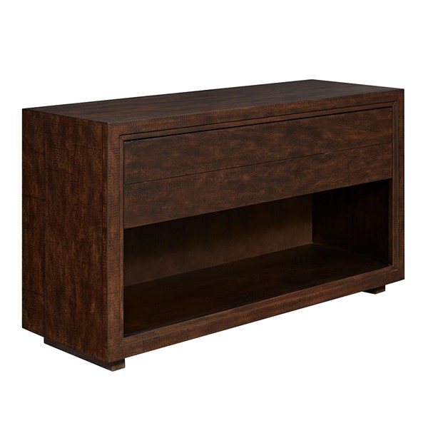 The Harbor House Bay Console Table offers a simple yet elegant update to your living room. This rectangular console table flaunts a dark mahogany wood finish that creates a rich and sophisticated look. An edge-pull drawer provides plenty of storage space for your essentials. Made from MDF with a veneer top and a solid wood base, this console table provides a chic addition to your living space. No assembly required. Drawer weight capacity: 75 lbs.