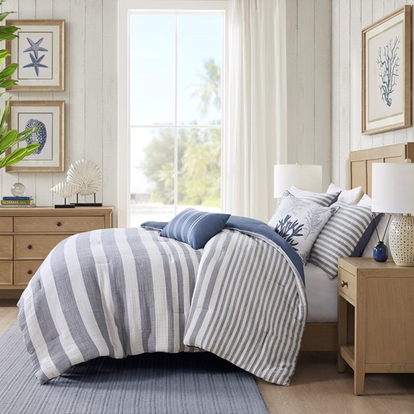 * 100% cotton comforter set for coastal, cottage/country lifestyles