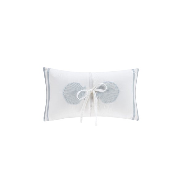 Elevate your bedroom with the costal charm of the Harbor House Crystal Beach Oblong Pillow. This cotton oblong pillow features blue embroidered seashells and blue stripes that accent the white base fabric, for a relaxing seaside charm. A ribbon accent, tied in the center of the pillow, adds an elegant touch to nautical design. Dry clean or spot clean for best care, this 12×20 inch oblong pillow is an accessory to the Crystal Beach bedding collection.