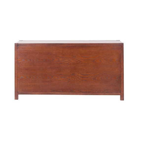 Material: Red Oak Veneer + MDF Frame, Red Oak Leg, Wood Drawer Glide, Glass Doors