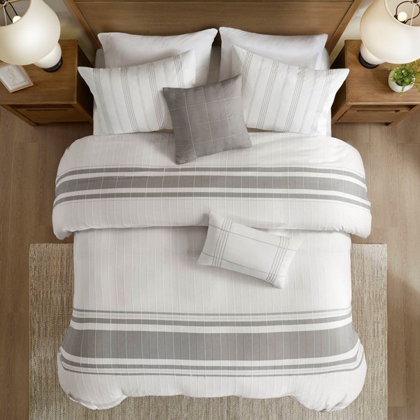 Harbor House Blue Morgan 5 Piece Cotton Jaquard Duvet Set in White/Grey, Full/Queen HH12-1828