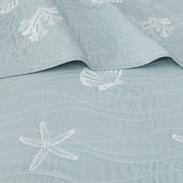 10 reviews for Harbor House Blue Seaside 4 Piece Cotton Reversible Embroidered Quilt Set with Throw Pillow in Aqua, Full/Queen HH13-1547