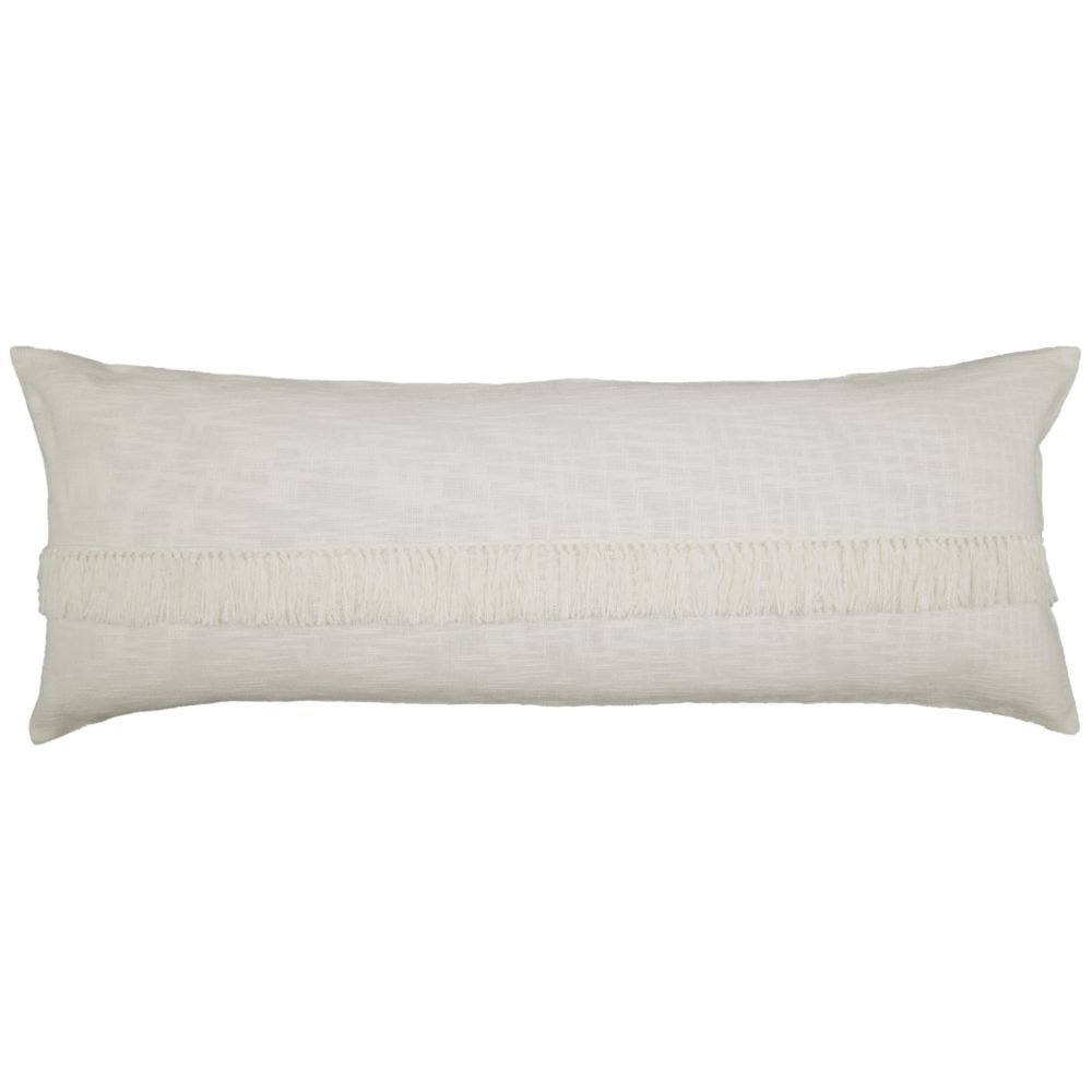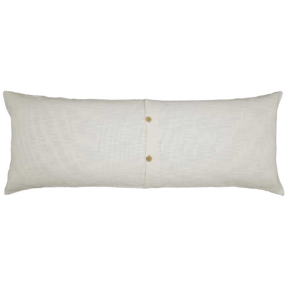 Your dream bedroom awaits. Simply add the Harmony Body Pillow Cover and watch how the unique fabric brings a comfortable richness to your bedroom, with thick woven yarn that features raised threads and slight knots, known as slubs. The fabric is richly textured, giving it a soft, cozy hand-feel, and the overall white tones have a refreshing visual depth and textural interest. A 10L flap overlays the front of the pillow, with knotted fringes running along the flap's edge, finishing the look with dimension and a whimsical flair. The cover reverses to the same cotton with two natural wooden buttons for closure and a 3 overlap of fabric at the opening provides more stability for the buttons. One extra button is sewn inside the sham. (Just in case!) The Body Pillow Cover is sold separately (no insert) and transforms your current body pillow (wait! You don't have one?) with a fresh updated look. Body pillow sold separately.
