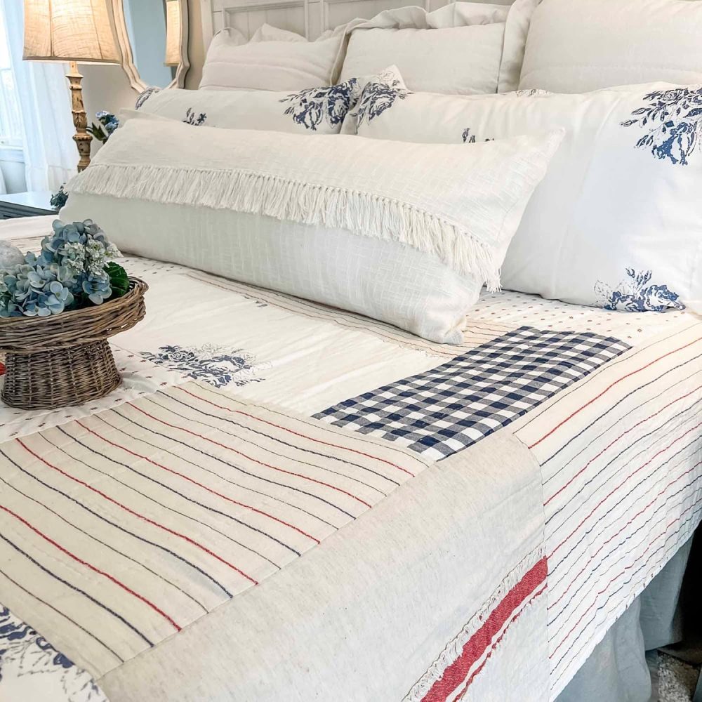 - Long body pillow sham features a 10L flap which overlays the front of the pillow with knotted fringes running along the flap’s edge. The cover reverses to the same cotton fabric with two natural wooden buttons for closure and a 3 overlap of fabric at the opening providing more stability for the buttons. One extra button is sewn inside the sham. (Just in case!)