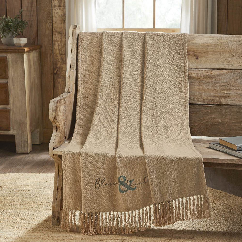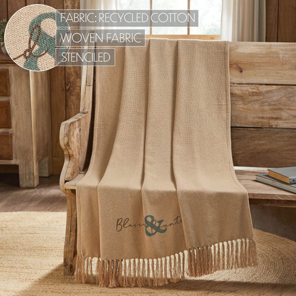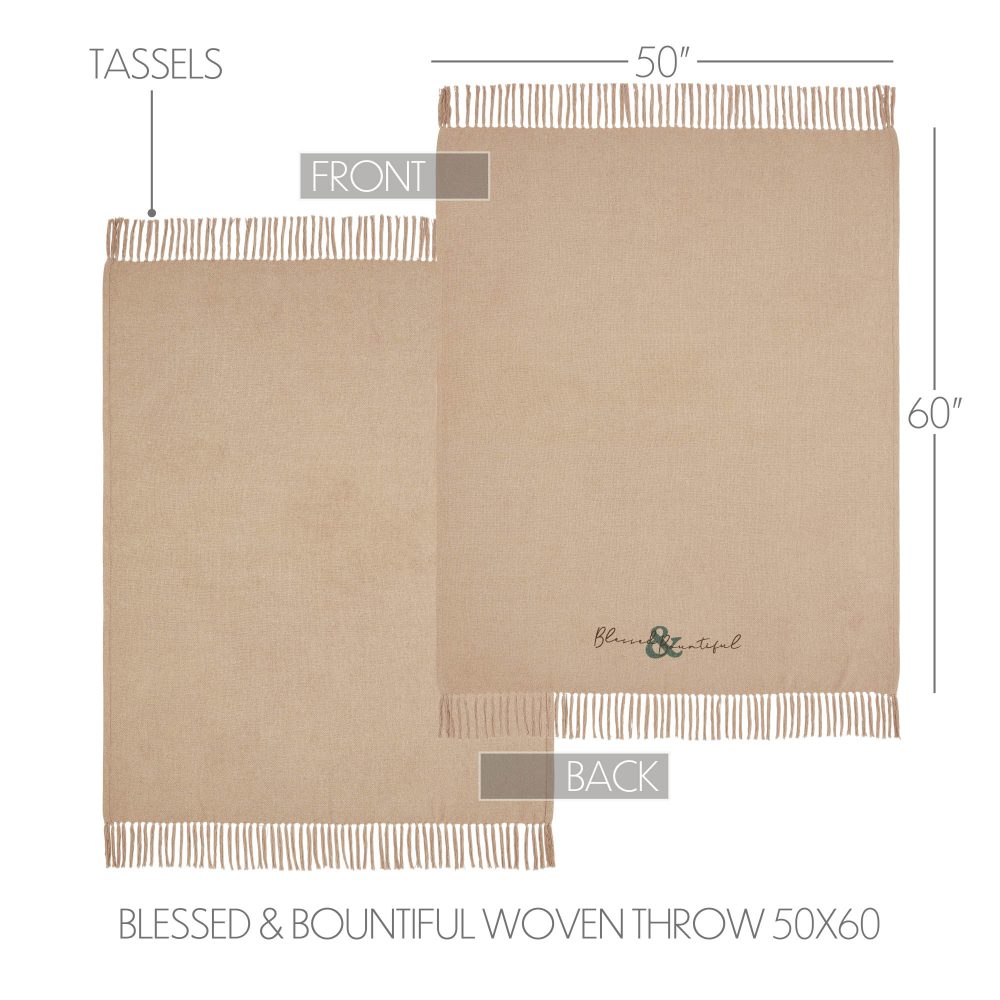 - PREMIUM HARVEST BLESSINGS THROW: Adorn your home with the VHC Brands Autumn Fall Inspirational Woven Throw Blanket, meticulously crafted from a comforting cotton and polyester blend for enduring softness and a gentle drape. This generous 50×60 inch decorative accent features a rustic farmhouse design in deep tan, rich coffee brown, and warm dark sage hues, elegantly showcasing the stenciled “Blessed & Bountiful” script. Perfect for adding heartwarming coziness and a touch of gratitude to any living space, this easy-care blanket is wonderfully machine washable, ensuring lasting beauty and effortless maintenance.