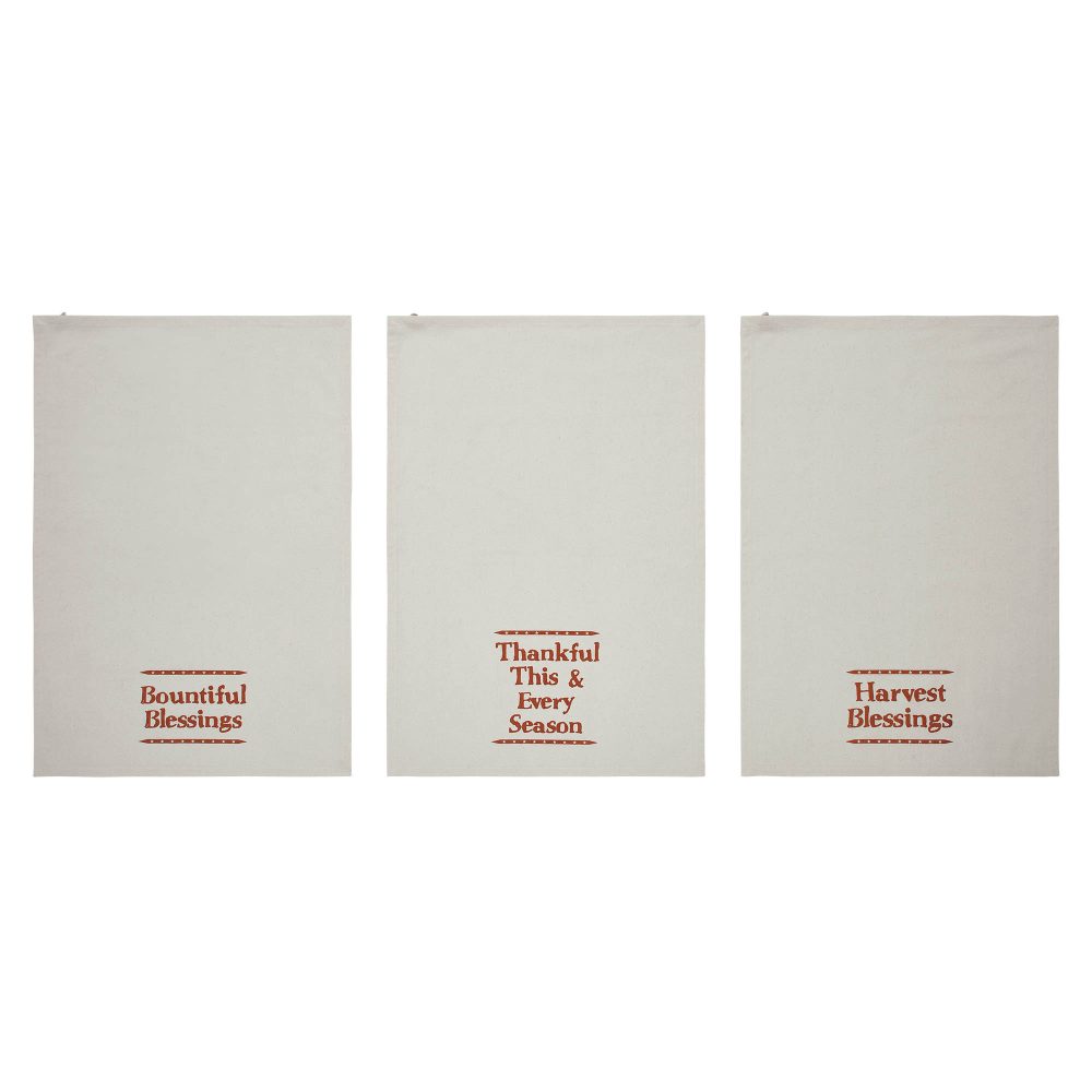 - SUPERIOR AUTUMN UTILITY & CHARM: This set of three 19×28″ absorbent kitchen towels delivers an elegant farmhouse aesthetic, crafted from pure cotton muslin in natural creme and burnt orange; each piece is thoughtfully stenciled with heartfelt “Blessings” like ‘Bountiful Blessings’ and ‘Thankful This & Every Season’, perfectly blending decorative autumn flair with high functionality for all your daily kitchen needs.