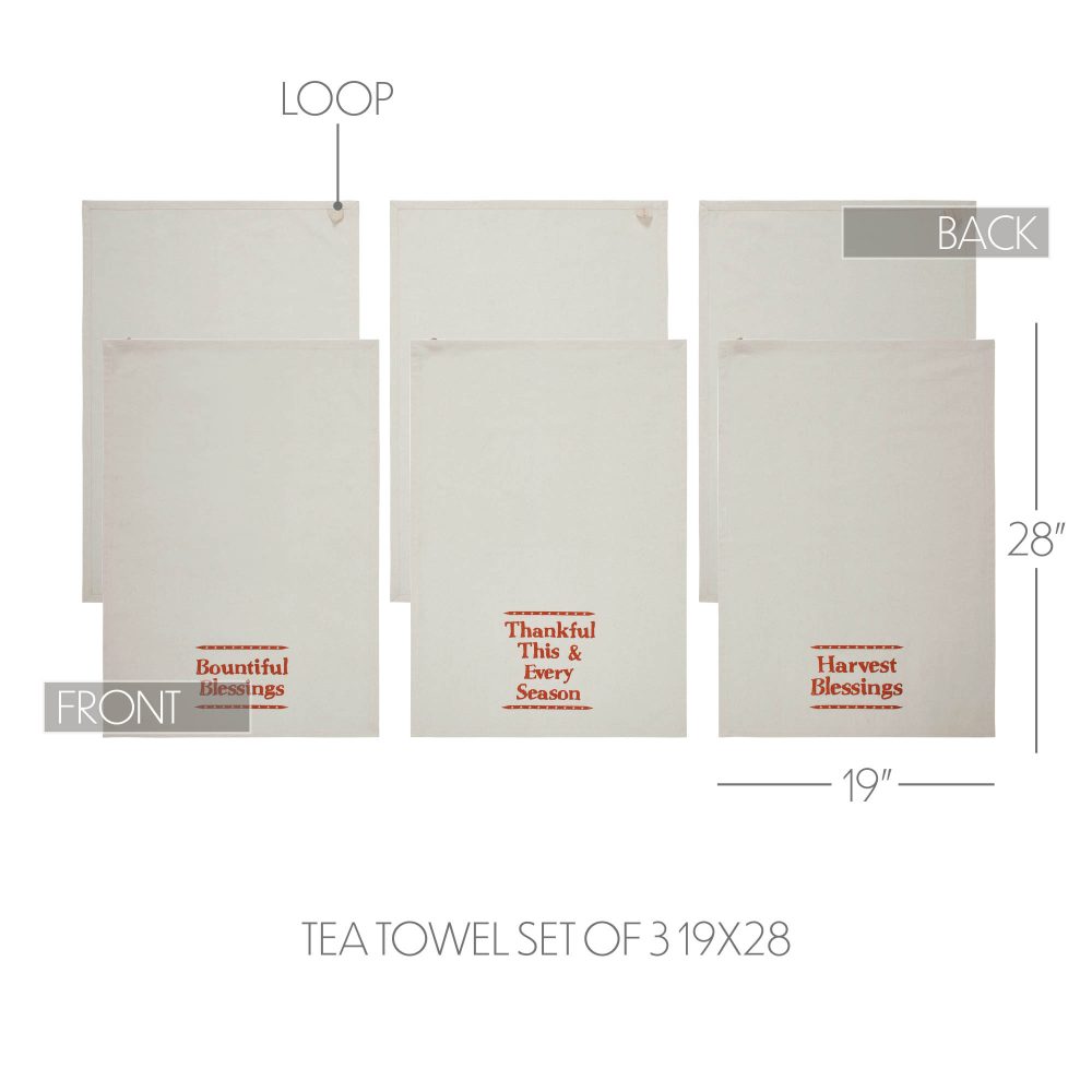 - CELEBRATE THE SEASON: Crafted from pure, absorbent cotton muslin and adorned with meaningful “Blessings” stencils, these farmhouse-inspired towels instantly elevate your kitchen’s autumn decor while offering superior utility and heartwarming charm.