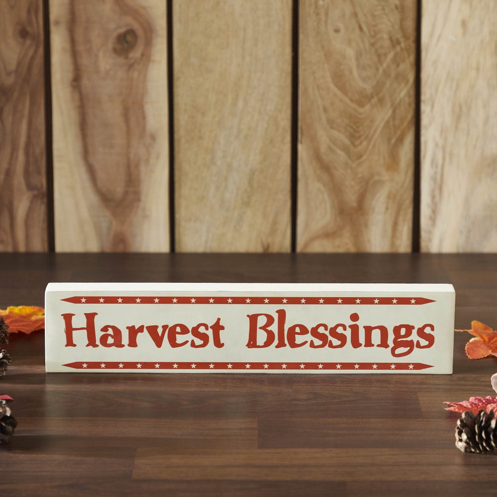 Imbue your home with the heartfelt warmth of autumn with the VHC Brands Harvest Blessings MDF Sign. This exquisite 3x14x1 inch rectangular tabletop decoration instantly elevates your Thanksgiving decor, resonating with a serene Farmhouse and charming Cottage Core spirit. Its cloud creme background, reminiscent of sun-drenched fields, beautifully contrasts with the inviting burnt orange lettering of 'Harvest Blessings', gracefully framed by a delicate border of mini stars. Each sign boasts a thoughtfully distressed finish, whispering tales of cherished moments and authentic country charm, making it a perfectly quaint addition to your mantel, shelf, or buffet. Crafted from durable MDF, this sign is not only a visual delight but also designed for lasting enjoyment and effortless maintenance, easily wiped clean. Place this inviting piece in your cozy kitchen, a welcoming entryway, or within your dining room's embrace, letting its simple elegance foster a deeply inviting atmosphere. Beyond its rustic appeal, the Harvest Blessings sign serves as a gentle, constant reminder to embrace life's abundant gifts and express profound gratitude. It's the ideal accent to gather around, creating new cherished memories and celebrating the rich tapestry of the harvest season with family and friends.