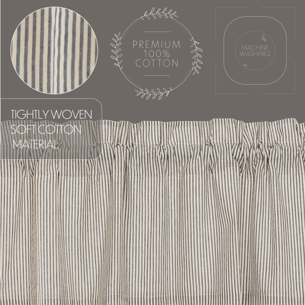 The Hatteras Seersucker Blue Ticking Stripe Prairie Long Panel Set creates a relaxed country feel for your home. Featuring denim blue and cotton white ticking stripes on quality seersucker material, these curtains are a versatile choice for accenting vintage kitchens, living rooms, and more. The gracefully angled drapes perfectly frame windows providing a bit of polish and Americana charm for your home. Our fully lined prairie panels come with built in drawstrings to adjust each panel to meet your style needs, along with a curtain rod pocket for easy hanging.