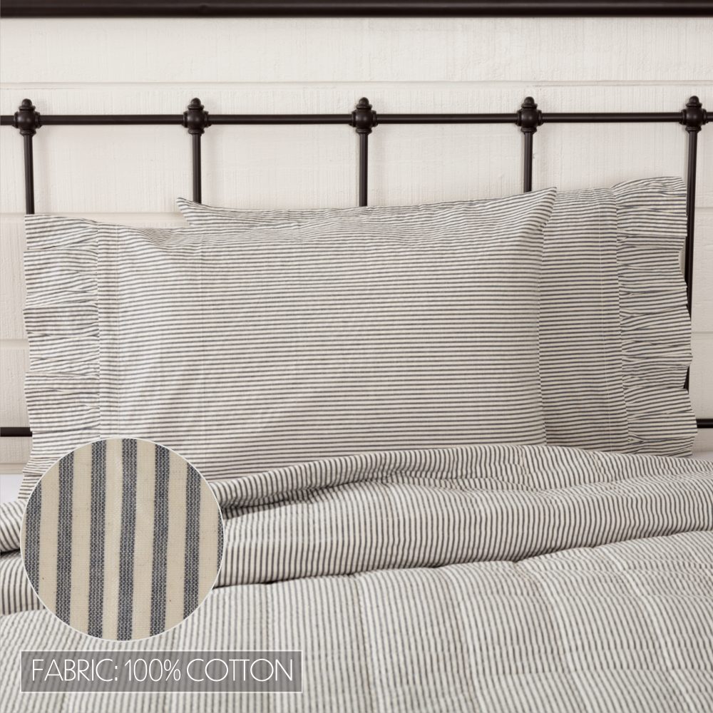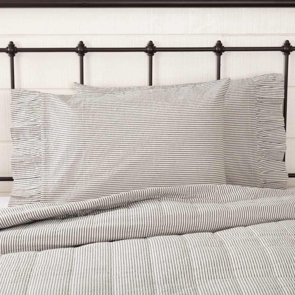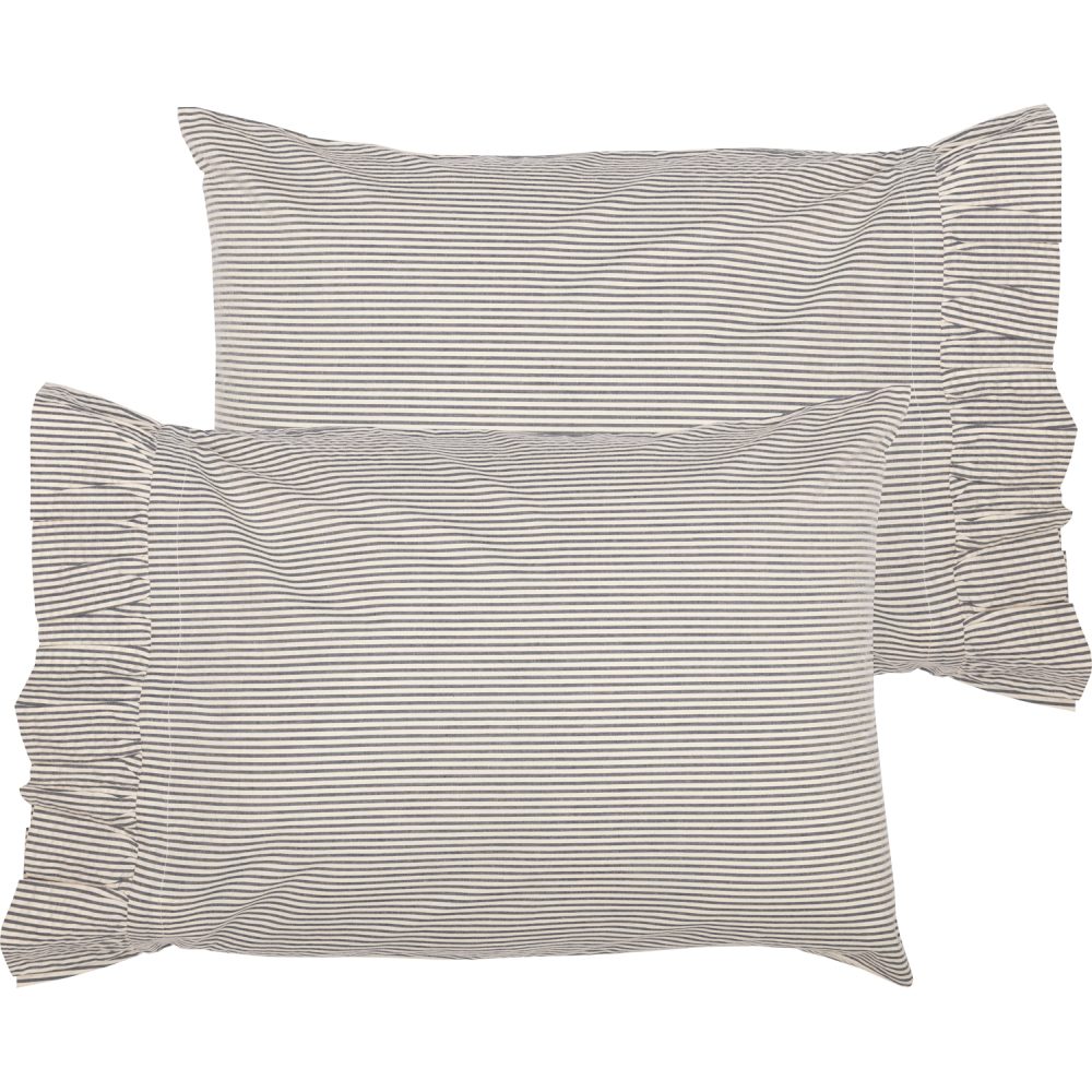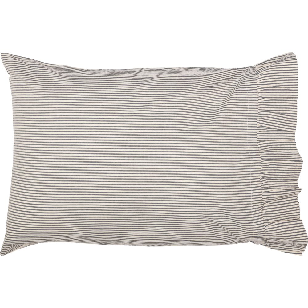 Accent your cozy farmhouse bedroom with warm, vintage-inspired ticking stripes for a traditional feel built to last. The Hatteras Seersucker Blue Ticking Stripe Standard Pillowcase Set of 2 21x30 features two durable and timeless pillow covers in striped denim blue and cotton white seersucker fabric. Ruffled pillow cases are a great way to add a finishing touch to farmhouse bedding for a perfectly sophisticated and put-together feel. The set features double-sewn seams for extra durability, as well as extra length to ensure good coverage of your fill pillow (not included). Coordinates with the Hatteras Collection by VHC for a complete Americana look with a bright blend of red, white and blue details. Machine washable and iron safe.