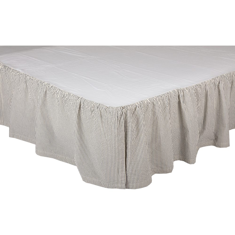 Craft a classic farmhouse bedroom with cool, coastal appeal and heirloom-quality seersucker fabric. The Hatteras Twin Bedskirt 39x76x16 completes the look of your country chic bedding with thin ticking stripes in denim blue and cotton white. This cotton dust ruffle is the perfect blend of practical and stylish. Features a long 16-inch drop to ensure that the fabric reaches your floor for a neat, put-together look that blocks under-bed storage from view while also keeping dust out of hard-to-reach areas. VHC bedskirts are also designed with split corners and slight ruffling for less fuss and a great fit every time. Coordinates with the Hatteras Collection by VHC for a complete Americana look for your bedroom featuring red, white and blue details in a mix of stripes, solids and simple plaids for a look that balances traditional country comfort and modern style. The bedskirt also effortlessly blends with other blue and white looks for a delightful coastal feel. Machine washable and iron safe.