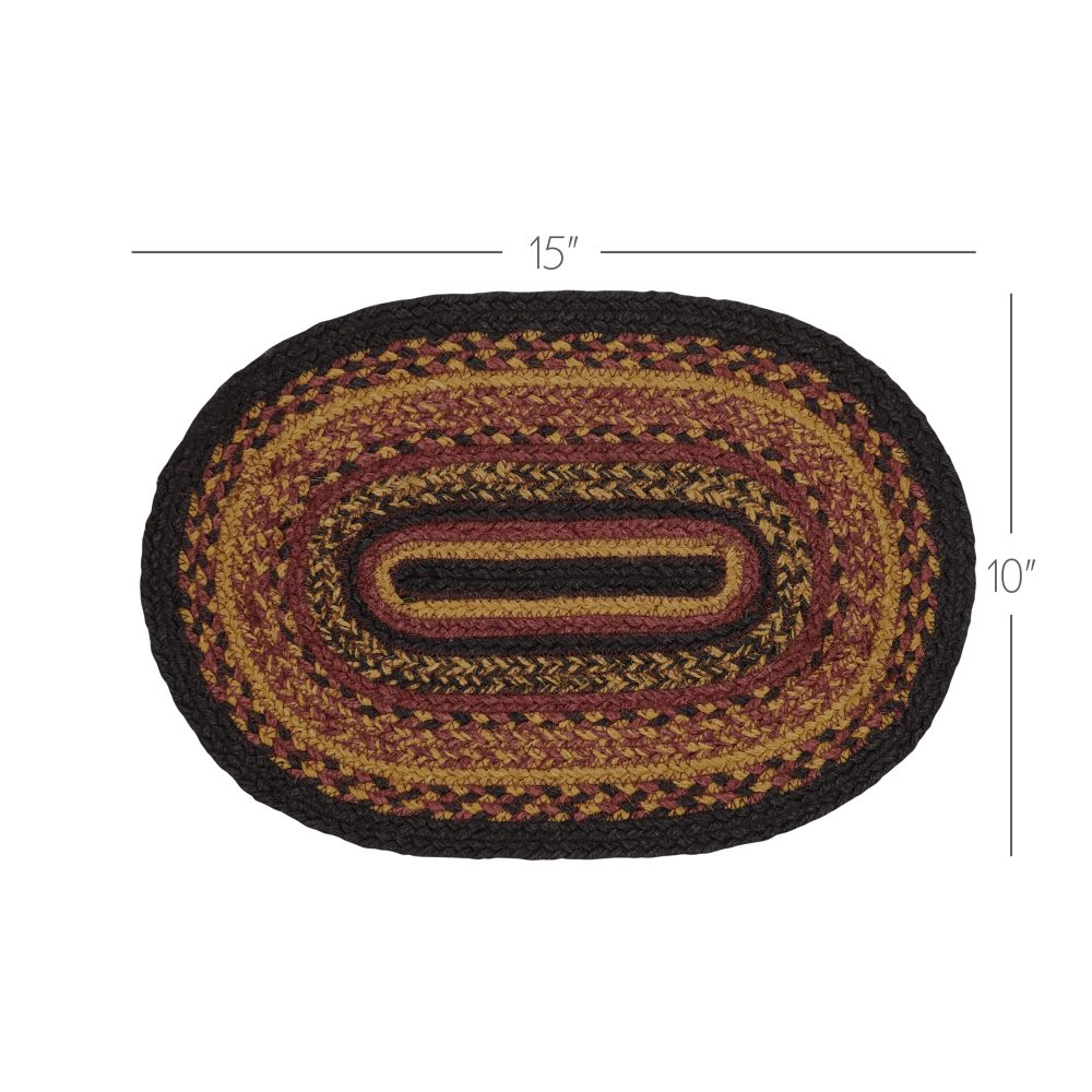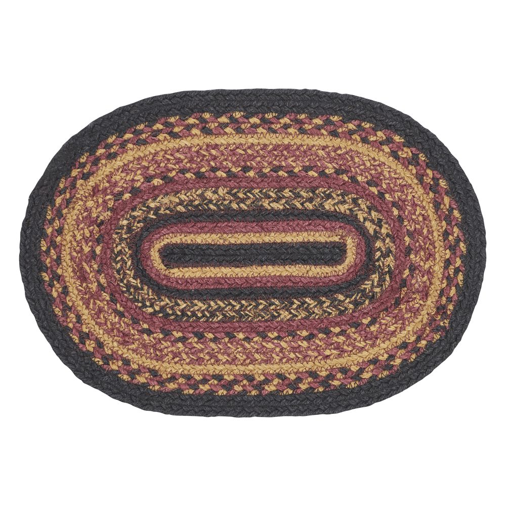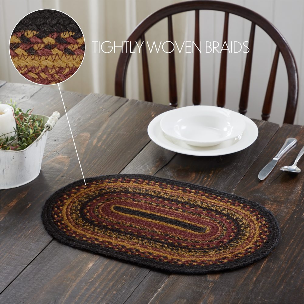 Create a joyful table for friends and family to gather round with robust colors and classic texture. The Heritage Farms Jute Placemat includes an individual placemat measuring 10x15 inches made from a premium Jute blend. The rich texture of braided jute is given a warm, rustic look with mustard tan, raven black and burgundy tones for bold country style. Complete your tabletop decor with other pieces from the Heritage Farms Jute Collection by VHC for primitive farmhouse style.