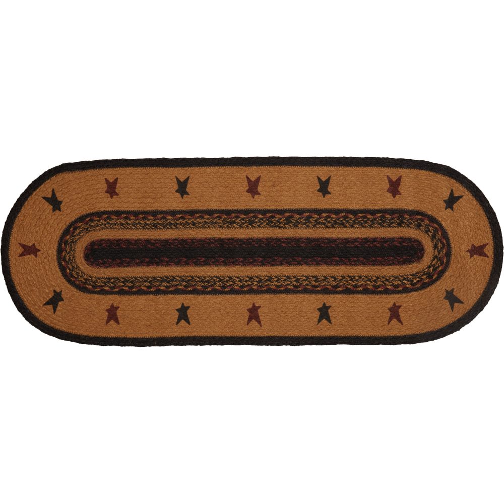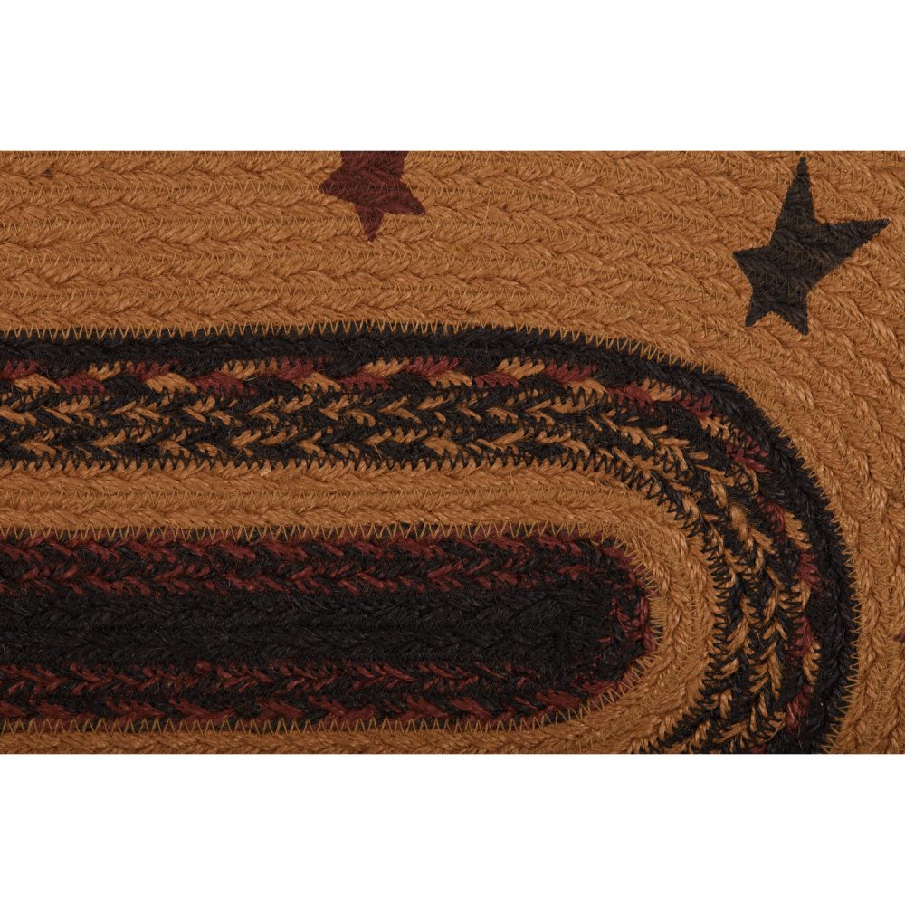 Create a joyful table for friends and family to gather round with robust colors and classic texture. The Heritage Farms Star Jute Runner includes one table runner measuring 13x36 inches made from a premium Jute blend. The rich texture of braided jute is given a warm, rustic look with mustard tan, raven black and burgundy tones and folk art style stars for bold country style. Complete your tabletop decor with other pieces from the Heritage Farms Jute Collection by VHC for primitive farmhouse style.