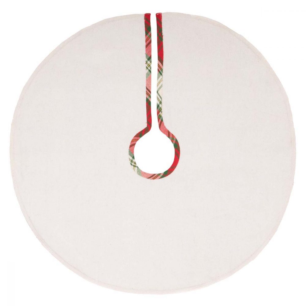 The opening is trimmed with .5" plaid binding, gold ribbon around outside edge, and reverses to solid creme felt. - PERFECT SIZE: This 21" plaid tree skirt is ideally sized for mini trees. Perfect for resting on an end table or small stool wrapped beautifully around your small Christmas tree.