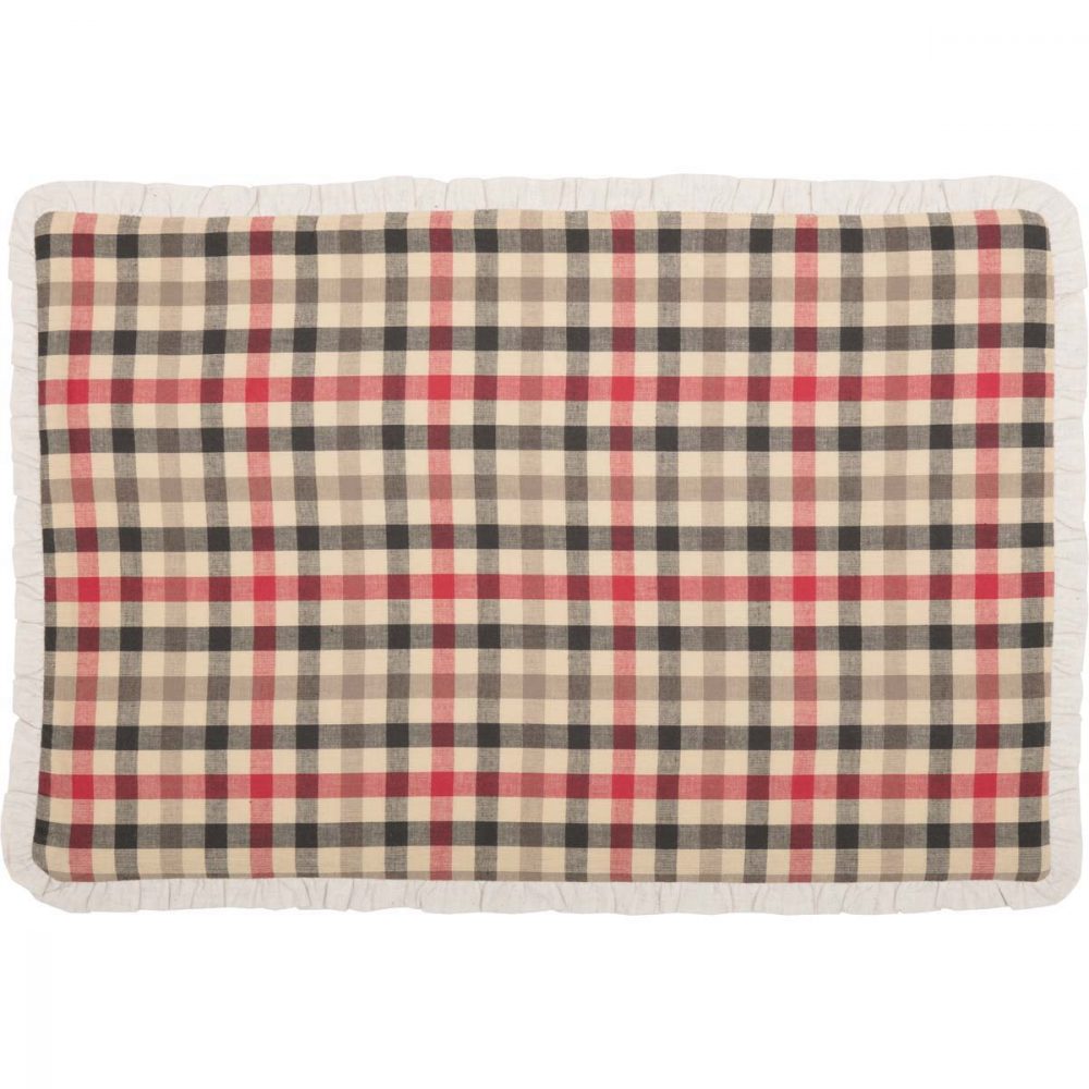 • DETAILED FEATURES: This truly festive Placemat Set features a subtle deep green, red, and creme plaid fabric with flannel lining. Trimmed with .5" ivory cotton flax gathered ruffle for a graceful country feel. Reverses to same as front