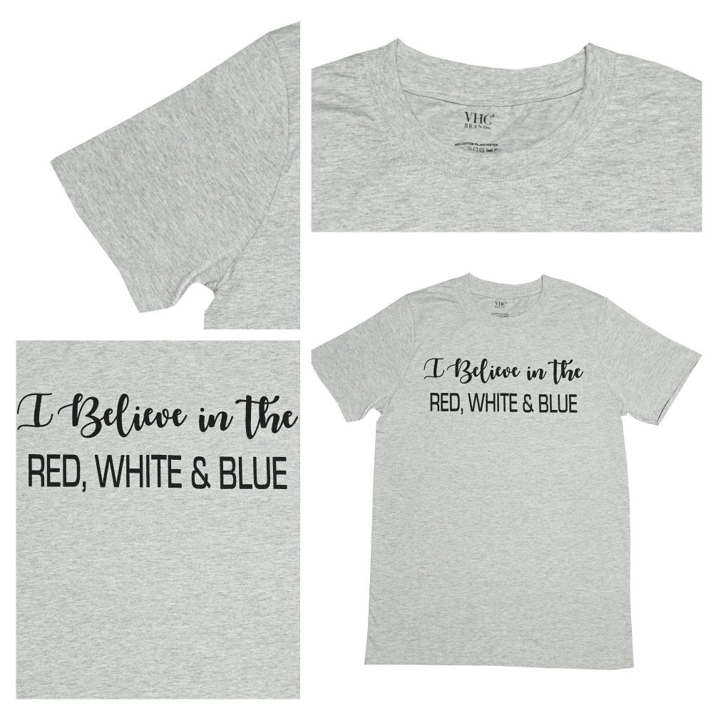 Introducing the VHC Brands "I Believe in the RWB" T-Shirt in a gentle light grey melange, designed to celebrate faith and patriotism. Available in a comfortable medium size, this inspirational unisex t-shirt is crafted from a premium cotton-polyester blend. Part of the Faith & Country Collection, it features a text design on a light grey fabric. This unisex t-shirt proudly displays "I Believe in the RWB," symbolizing your unwavering faith and commitment to the values represented by the red, white, and blue. The text adds depth and character to the design, while the cotton-polyester blend ensures comfort and durability, making it perfect for daily wear. Whether you're wearing it on national holidays or as a statement of pride year-round, this inspirational t-shirt from the Faith & Country Collection embodies your love for the country and the enduring values it stands for. Wear it with honor and let your "I Believe in the RWB" t-shirt be a symbol of your strong faith in the nation.