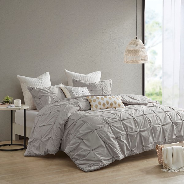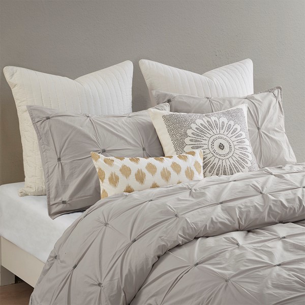 Elevate your bedroom with the INK+IVY Masie 3 Piece Elastic Embroidered Cotton Duvet Cover Set. This solid cotton duvet cover features elastic and embroidered details on the face to create a tufted-inspired design with a modern flair. The 2 matching shams handsomely pair with the cotton duvet cover to complete this modern and sophisticated bedding set. This cotton duvet cover set uses an antimicrobial treatment that provides built-in freshness protection, reducing the growth of odor causing bacteria to keep fabric lasting longer. Euro shams and decorative pillows are sold separately. A button closure allows you to place a padded insert within the duvet cover and internal corner ties help prevent it from shifting (Insert is NOT included).