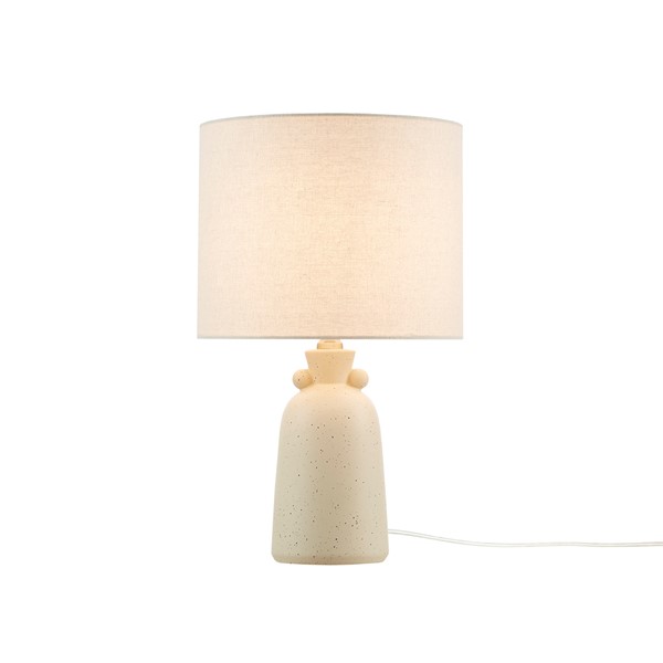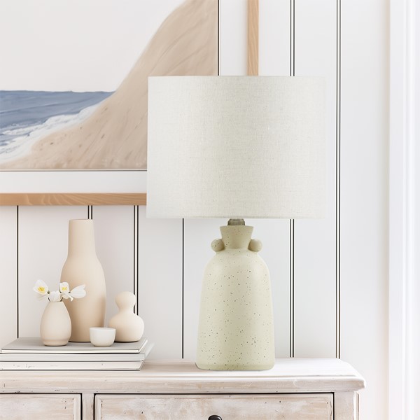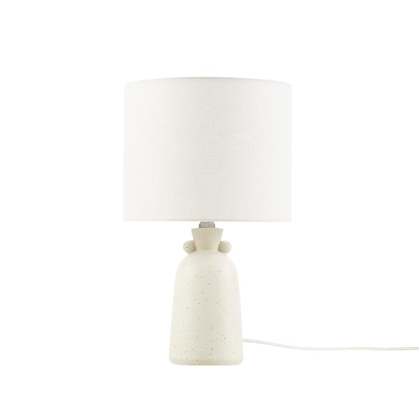 Brighten your space with the Ink+Ivy Alarid accent table lamp. Its ceramic base, boasting a pottery-inspired finish, exudes effortless elegance. The relaxed yet modern design features a distinctive neck with two spherical elements, uplifting any room. With a white drum shade casting a soft glow, it’s perfect for home offices, living rooms, or cozy reading corners. Complete with an on/off switch and a 9W LED bulb, this lamp merges style with convenience, offering a casually chic illumination.