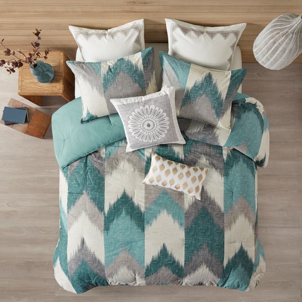 Elevate the beauty and style of your bedroom with the INK+IVY Alpine Comforter Mini Set. This cotton comforter set flaunts a sophisticated ikat chevron print on the face with a solid reverse to create a striking modern and elegant look. The 2 matching shams coordinate with the design of the cotton comforter to complete this dynamic bedding set. This comforter set is OEKO-TEX certified, meaning it does not contain any harmful substances or chemicals, and uses an antimicrobial treatment that provides built-in freshness protection, reducing the growth of odor causing bacteria to keep fabric lasting longer. Euro shams and decorative pillows are sold separately.