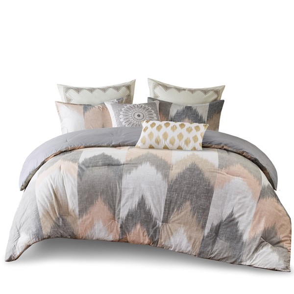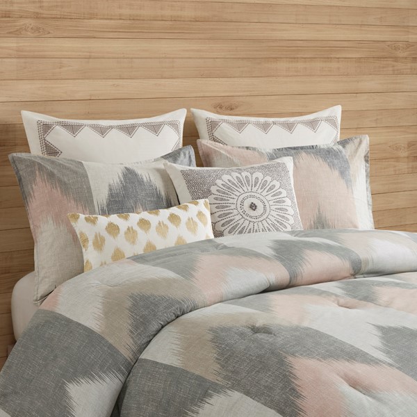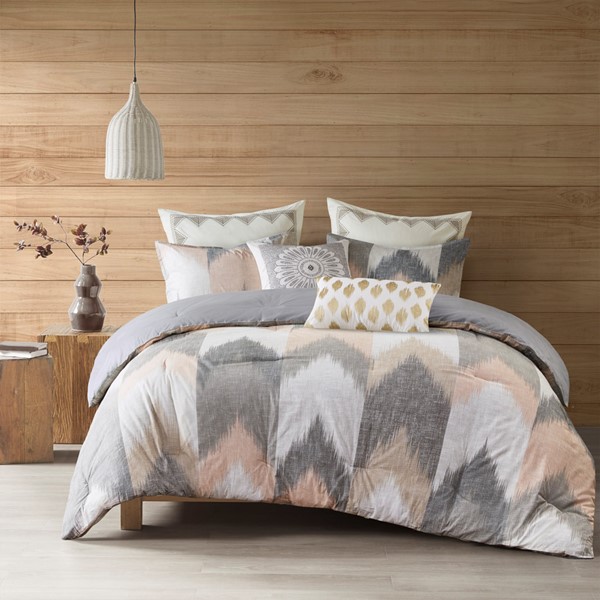 Elevate the beauty and style of your bedroom with the INK+IVY Alpine Comforter Mini Set. This cotton comforter set flaunts a sophisticated ikat chevron print on the face with a solid reverse to create a striking modern and elegant look. The 2 matching shams coordinate with the design of the cotton comforter to complete this dynamic bedding set. This comforter set is OEKO-TEX certified, meaning it does not contain any harmful substances or chemicals, and uses an antimicrobial treatment that provides built-in freshness protection, reducing the growth of odor causing bacteria to keep fabric lasting longer. Euro shams and decorative pillows are sold separately.