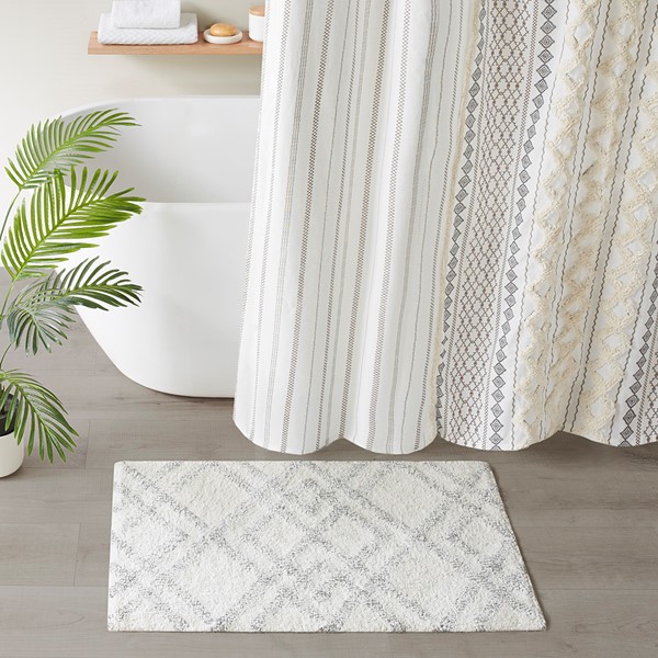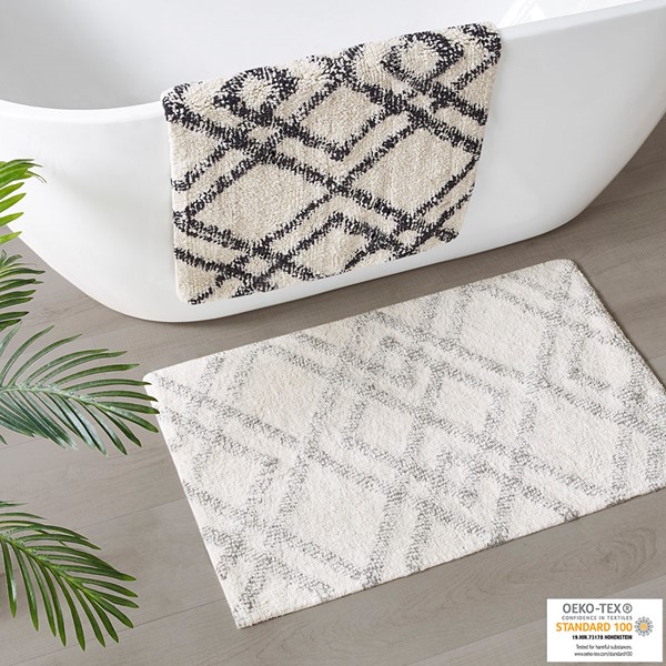 The INK+IVY Ansel Geo Diamond Yarn Dyed Cotton Tufted Bath Rug brings a plush and modern touch to your bathroom decor. Made from 100% cotton, this tufted bath rug features a contrast diamond pattern on a soft ground, while the yarn dyed technique creates a light heathered effect for beautiful dimension and a unique design. This rug is finished with a Non-skid resistance latex backing, which helps to keep the bath rug in place throughout the day. Machine washable for easy care; This cotton bath rug is also OEKO-TEX certified, meaning it does not contain any harmful substances or chemicals to ensure quality comfort and wellness. Bring the perfect artisan touch to your home with our New INK+IVY bath rug collection, easily complete the look with any INK+IVY Shower Curtain, Bedding, and Window Collections, available and sold separately.