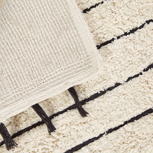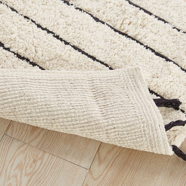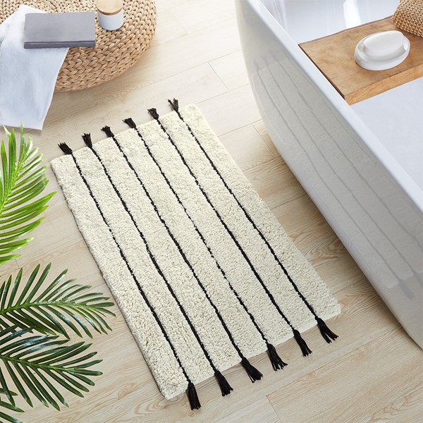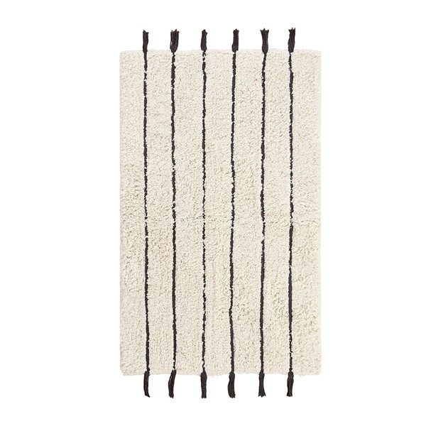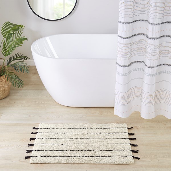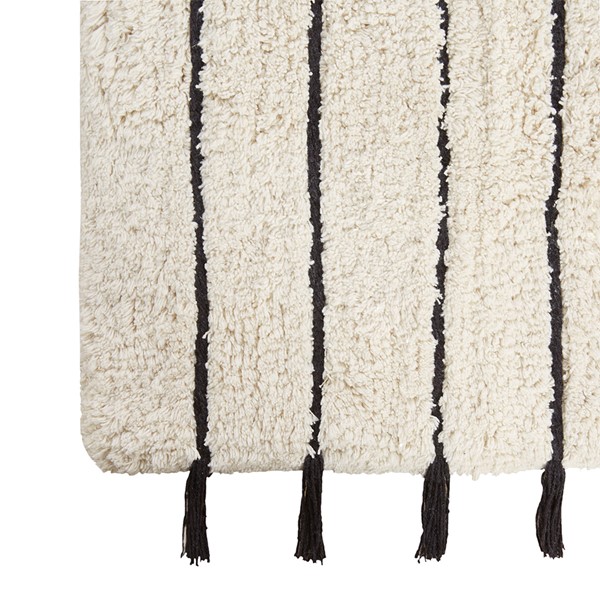 The INK+IVY Arbor Stripe Tassel Cotton Tufted Rug brings a simple yet stylish update to your bathroom decor. This tufted cotton bath rug features a woven yarn technique for a contrast textural stripe pattern, while coordinating tassel detailing at the ends provides the finishing touch for an artisan, look and feel. The soft, plush ground is featured in a light neutral hue to accentuate the design and easily coordinate to any decor; while the Non-skid resistance latex backing helps keep the bath rug in place throughout the day. Machine washable cold, this cotton tufted bath rug has a medium 0.5" pile to give your bathroom a soft touch while still clearing any standard door gap and or space. Add the perfect craftsmanship update to your home with our New INK+IVY bath rug collection; easily complete the look with any coordinating INK+IVY Shower Curtain, Bedding, and Window Collections, available and sold separately.