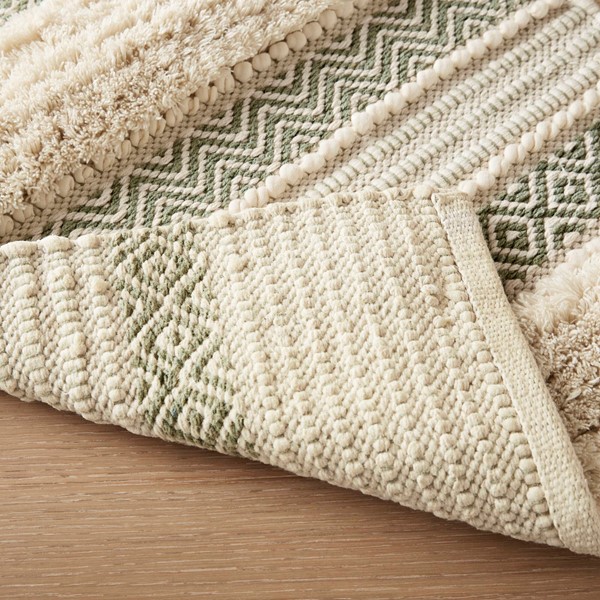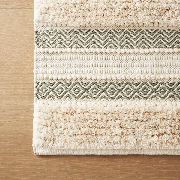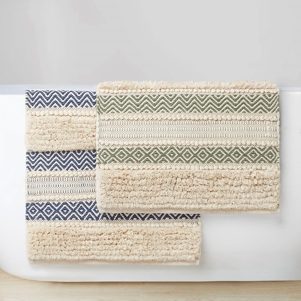 Globally inspired with an artisan touch, the INK+IVY Asher Woven Texture Stripe Bath Rug is the perfect update to refresh your bathroom decor. This hand-woven bath rug features a combination of beautiful patterns, shaggy textures, and fabric techniques in a vertical stripe layout, for a stylish Boho look and feel. The shaggy woven texture is featured in a solid light natural hue, which alternates between a taupe geo pattern and fabric manipulation technique to create soft dimension and a unique design. Machine washable for easy care; this rug is also finished with a Non-skid resistance latex backing to help keep the rug in place throughout the day. Complete the look of this New INK+IVY bath rug collection with any of our coordinating INK+IVY Shower Curtain, Bedding, and Window Collections, available and sold separately.