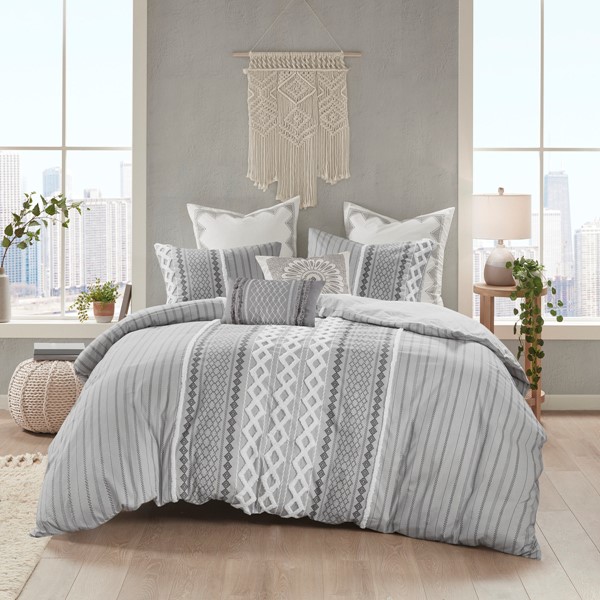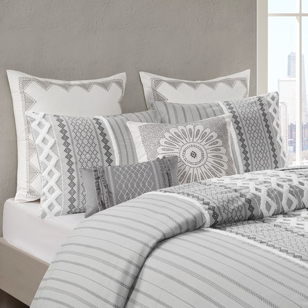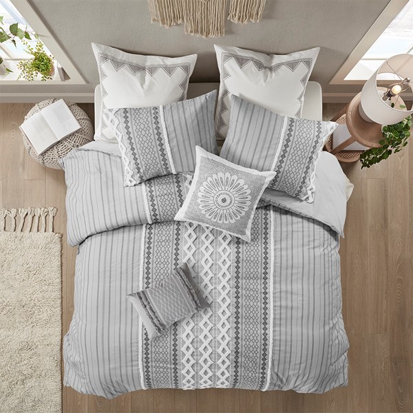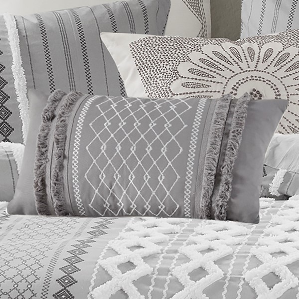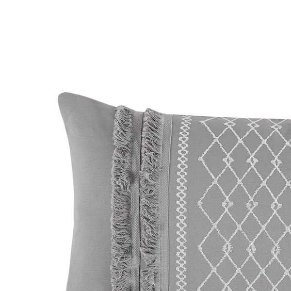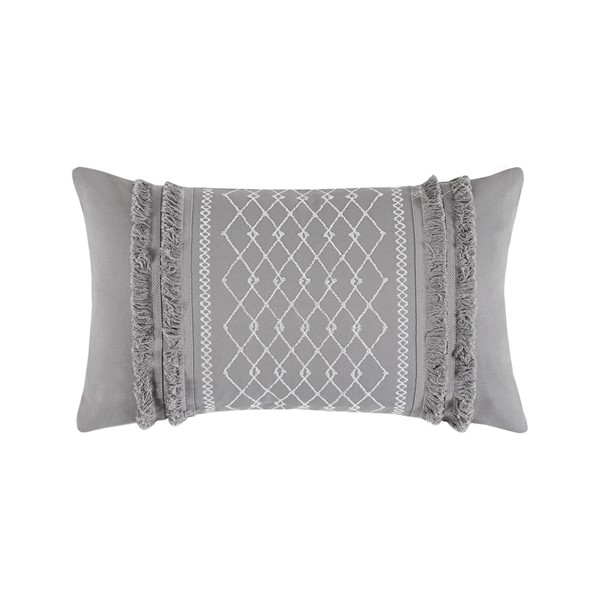 INK+IVY Bea Embroidered Cotton Oblong Pillow with Tassels in Grey, Oblong II30-1209