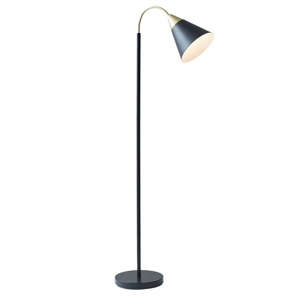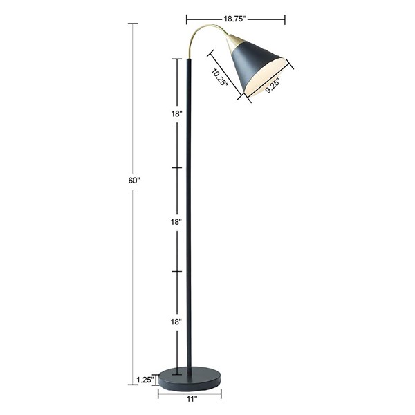 The INK+IVY Beacon Arched Metal Floor Lamp with Chimney Shade provides a refined and sophisticated option to illuminate your living room. This floor lamp features a slender arched neck with a conical shade, in a matte black and gold finish, for a chic mid-century look. A round base and black cord complete this metal floor lamp to turn your home into the perfect cozy and comfortable space. Use one Type A light bulb (not included).